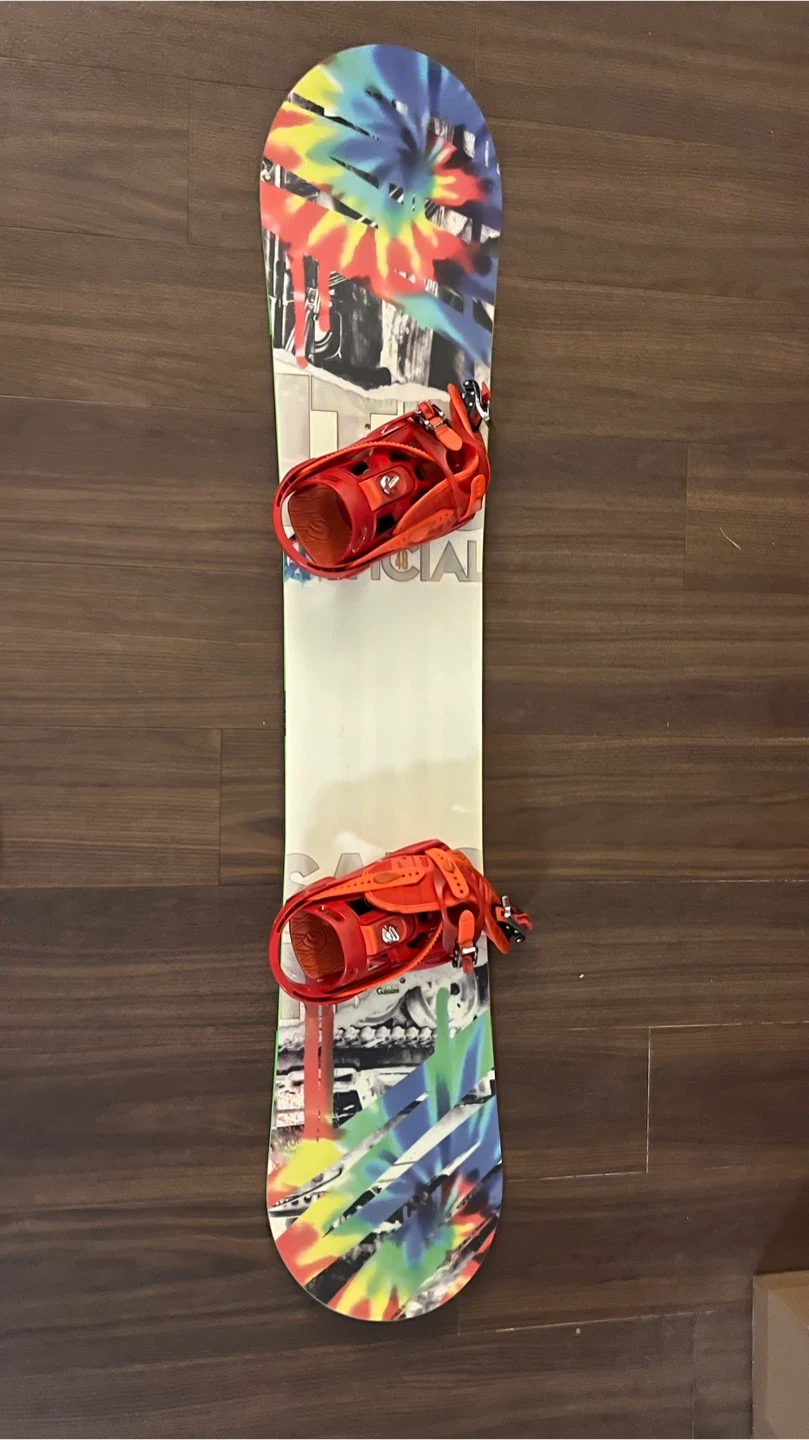 Women’s Snowboard for Sale (Used Only Once) • Condition: Almost brand new, used only one time. No scratches, no damage, very well kept. • Includes: Women’s snowboard + bindings (set) • Design: Colorful tie-dye style graphic with red bindings • Details: • Women’s size – perfect fit for female riders • Barely used, excellent condition • Great for beginners to intermediate riders • Suitable for park and all-mountain riding Boots : 240mm