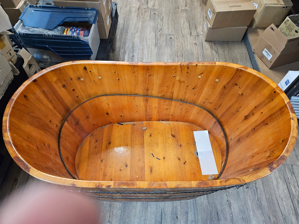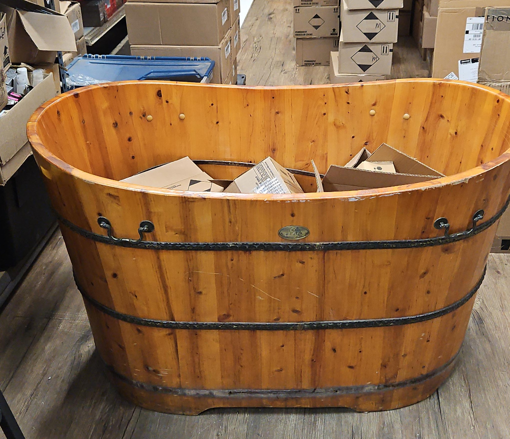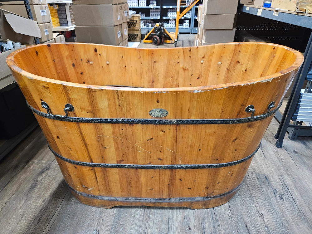 Selling a wooden bathtub from Moss Stick & Wood Sanitary Ware. It's a unique piece that could add a rustic touch to your bathroom. Please note it shows some signs of wear.