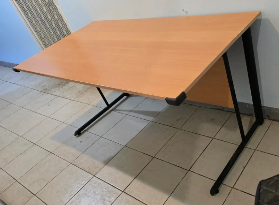 21Selling a simple wooden desk with black metal legs. It's sturdy and perfect for a home office or study space. The desk has a clean and minimalist design that fits well in any room. It's in good condition, ready for a new home!