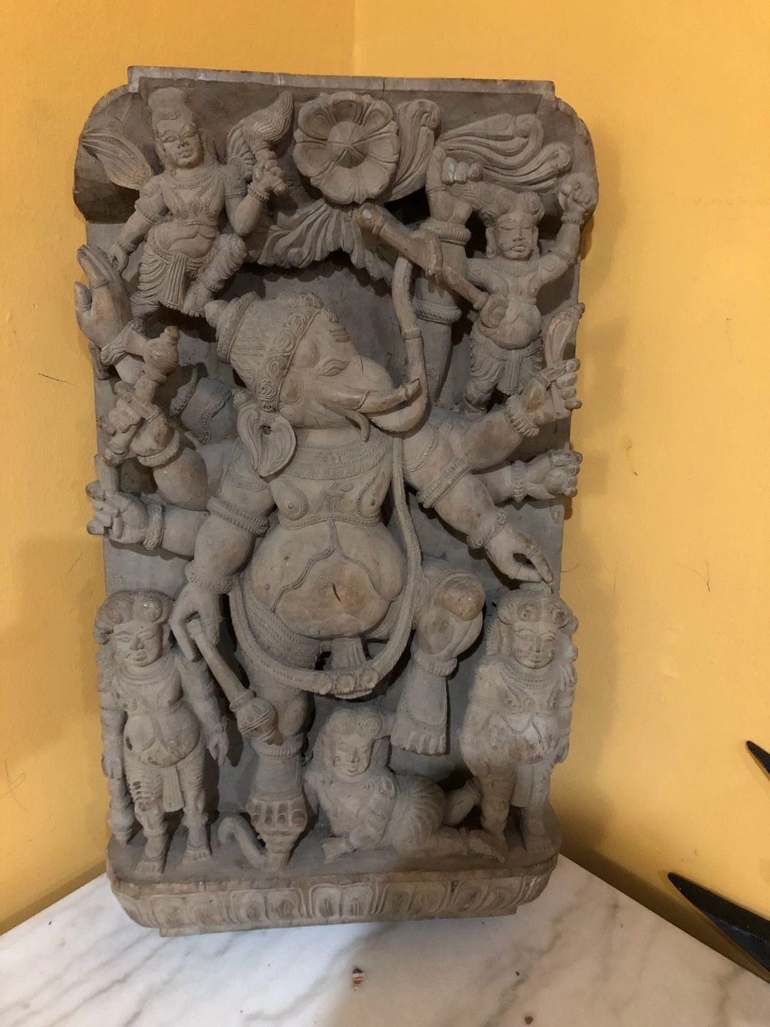 10Beautiful hand carved Ganesh from single wooden log of 50Lb. 2 feet long and 1-1/2 feet wide ..beautiful art of past