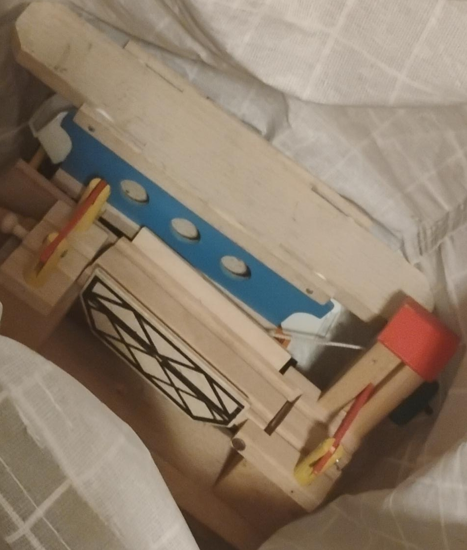 Selling a set of wooden train tracks and accessories. Includes various track pieces and some train cars. Great for kids who love trains!
