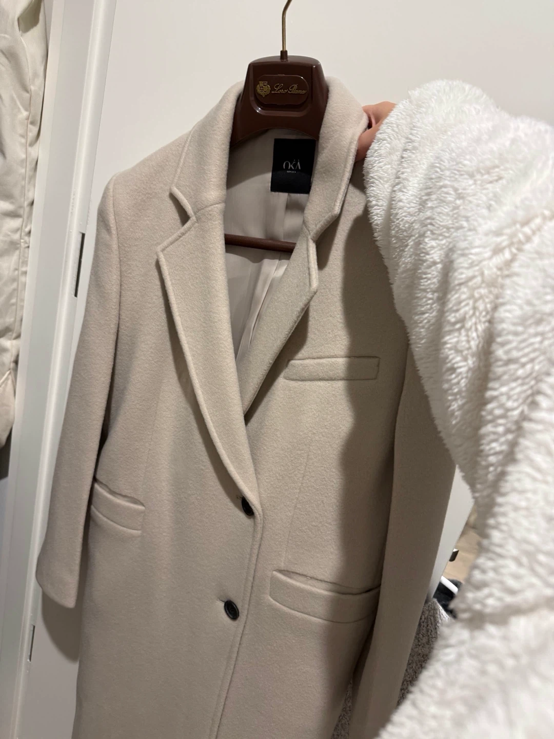 This is brand Ostkaka coat, wool 89% and cashmere 11% greige color