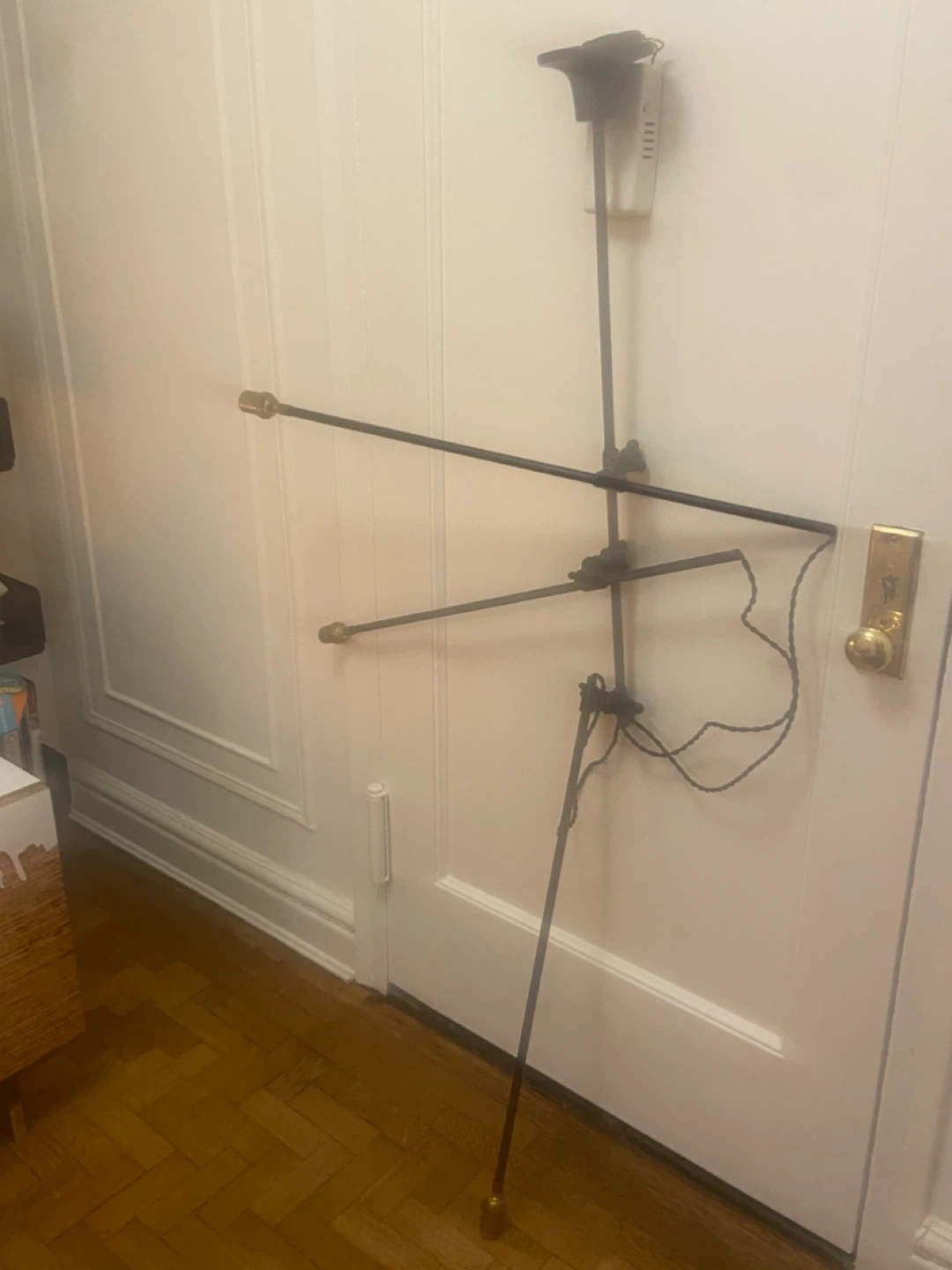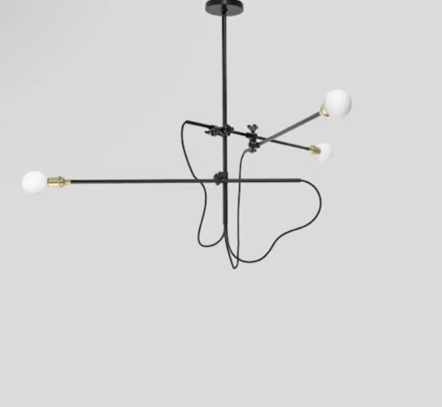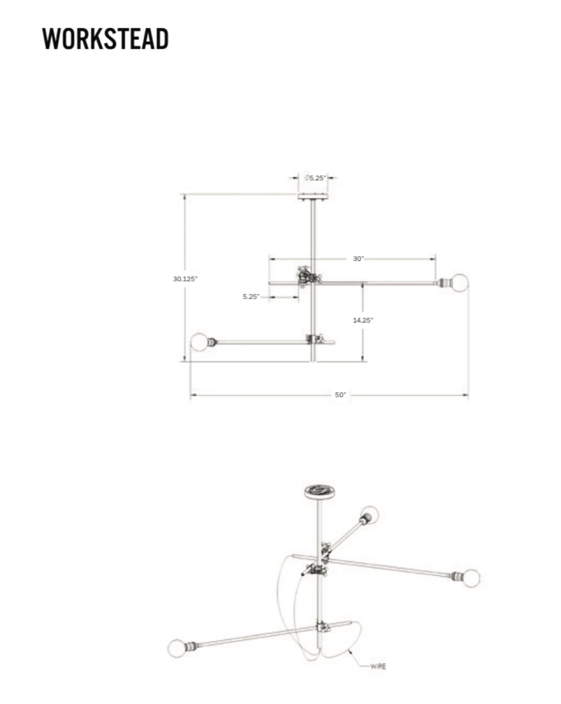 Selling a WORKSTEAD INDUSTRIAL CHANDELIER. A distilled interpretation of 19th century factory lighting. Composed of slender metal tubing, hand-cast adjustable clamps and cloth-covered cord, the piece serves as movable sculpture, re-centering the eye based on configuration. Assembled horizontally, it hangs 30" from the ceiling. Vertically, it can range from 30" to 60". Custom heights available. UL/cUL/CE Listed. Damp Rated.