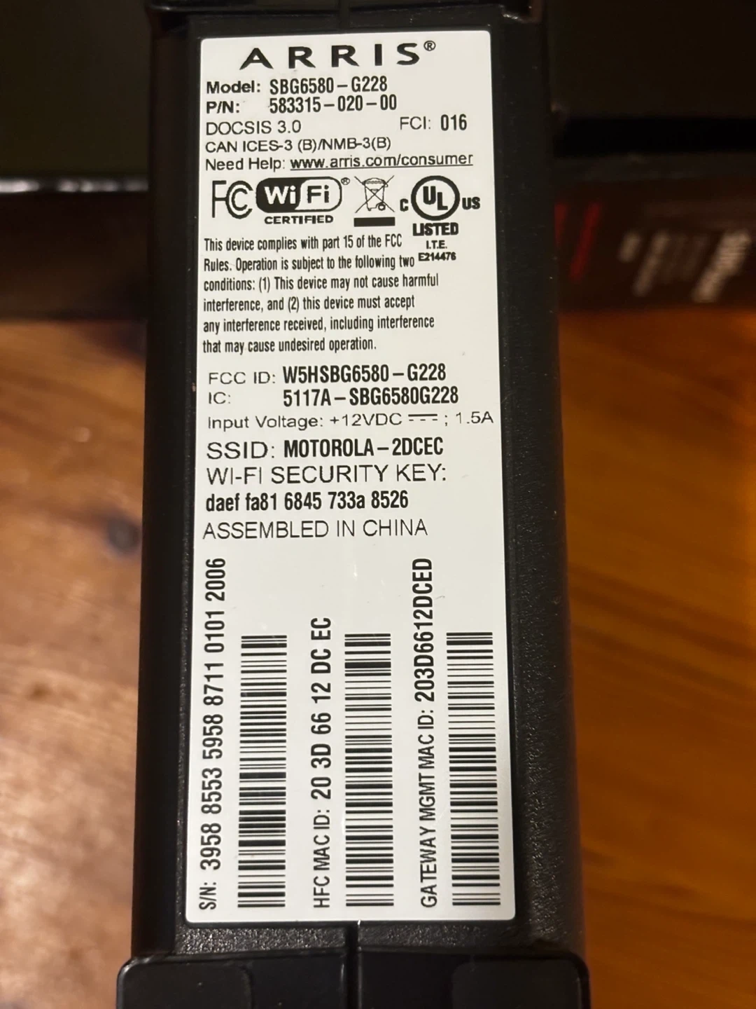 ARRIS SURFboard Cable Modem & Wi-Fi Router N300 SBG6580