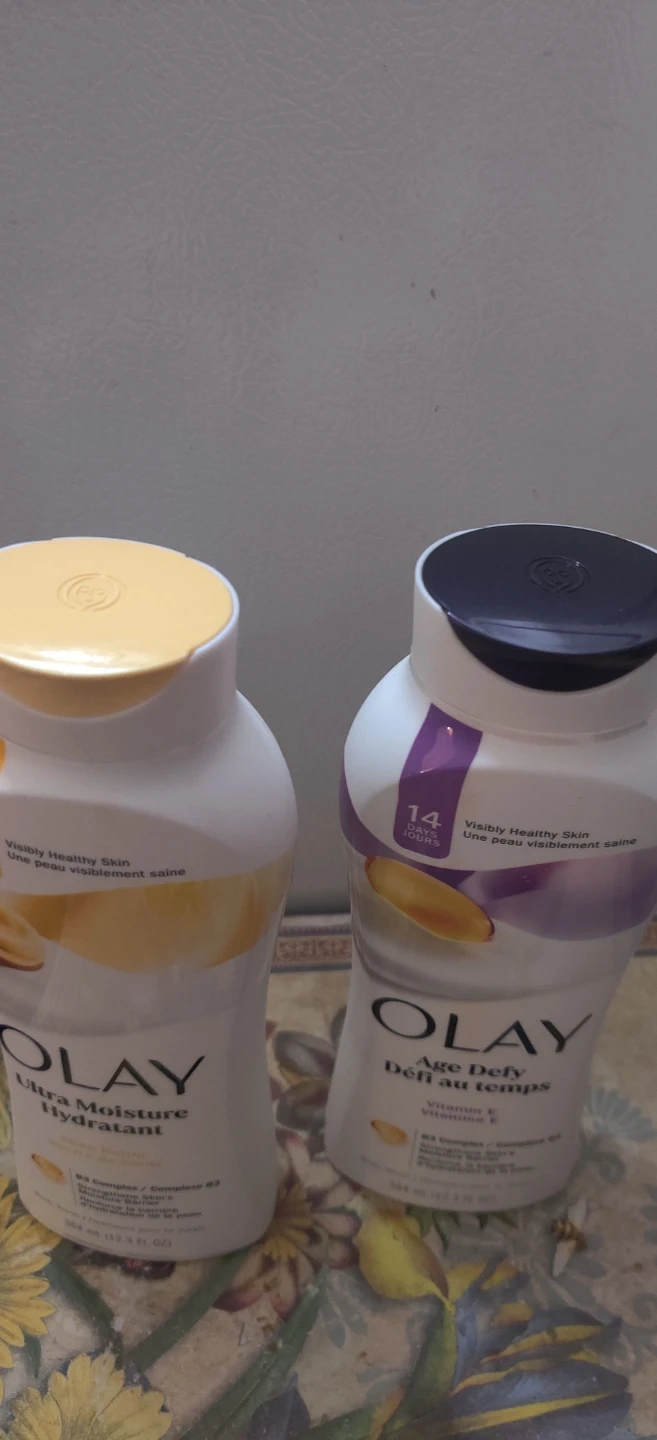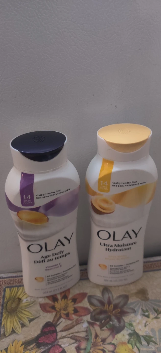 I'm selling two bottles of Olay body wash: Ultra Moisture with Shea Butter and Age Defy with Vitamin E. Both are 364 mL each. Lather with puff and rinse for visibly healthy skin!