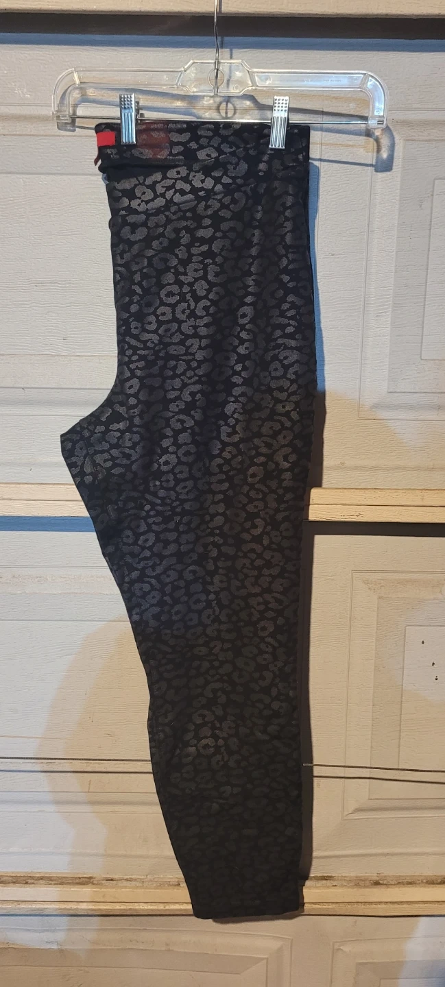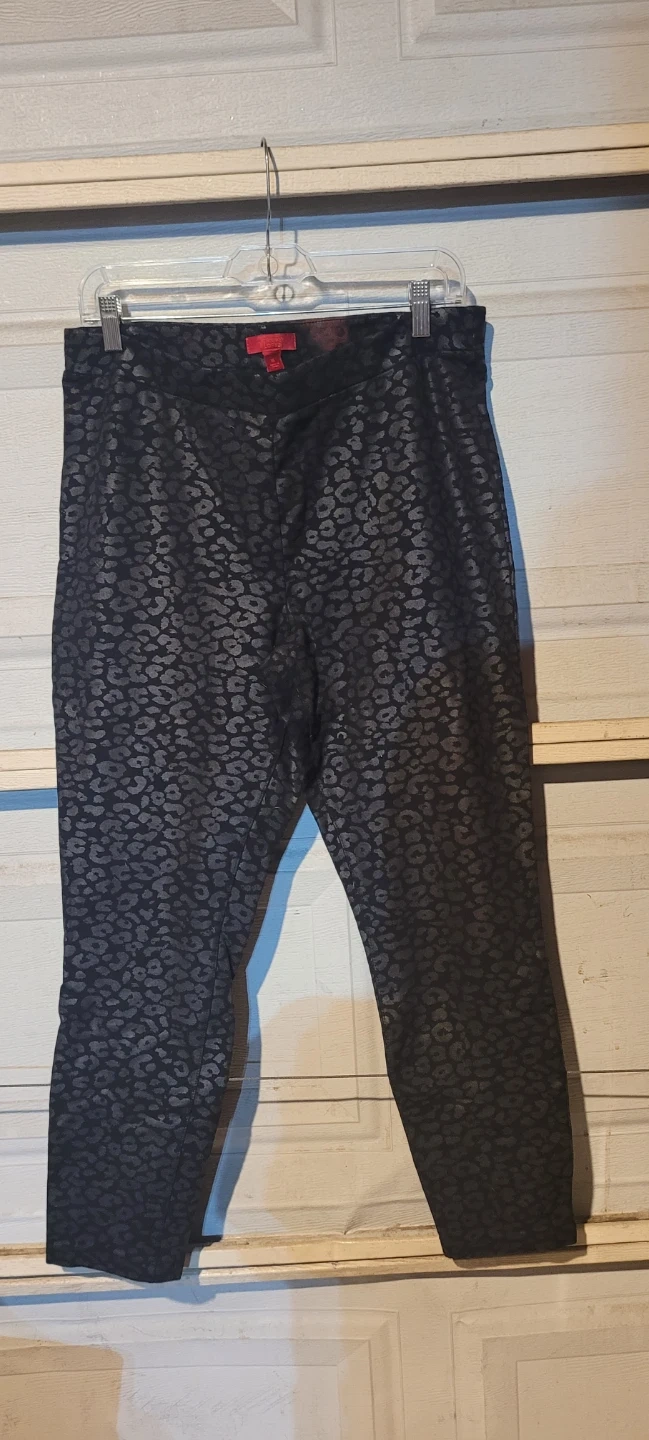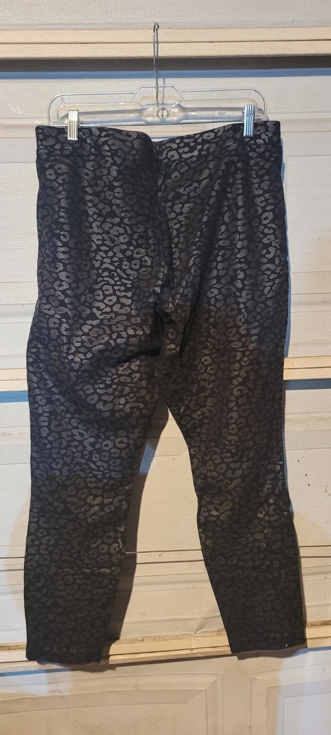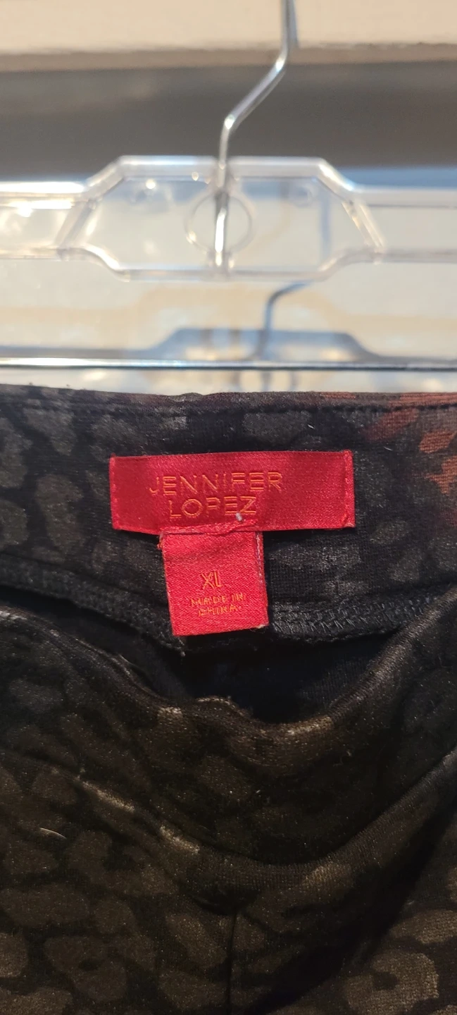 These Jennifer Lopez pants feature a black and silver leopard print. They are a size XL and made from a stretchy material. Perfect for adding a bit of flair to your wardrobe!