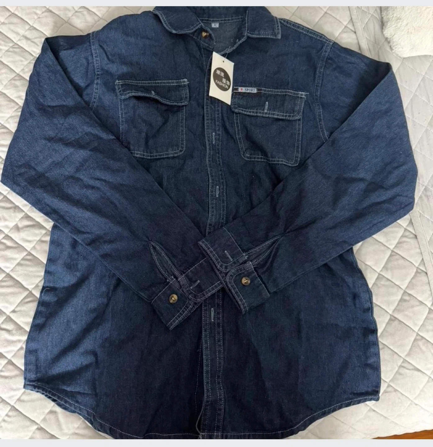 Dark Blue Denim Button-Up shirt, size XL (fit like L)