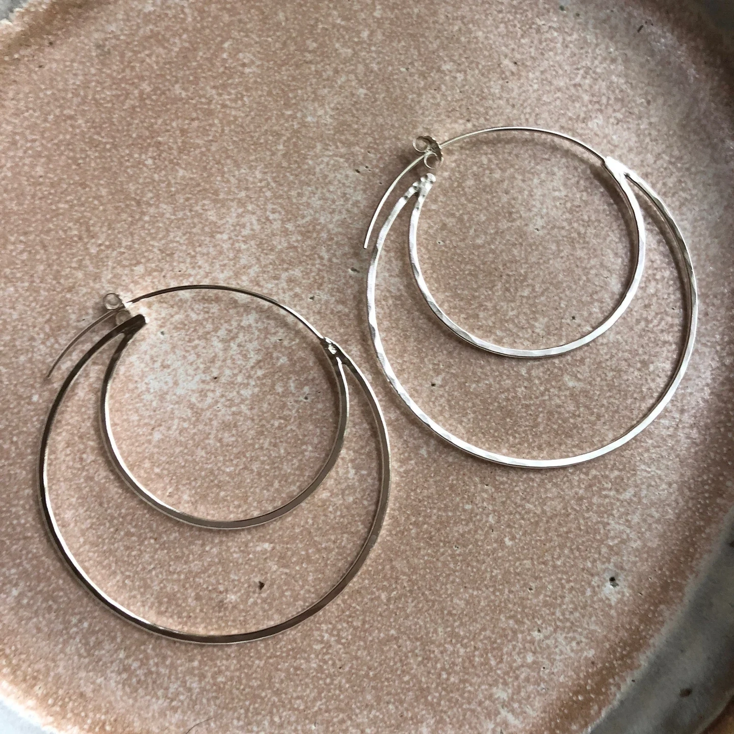 Crescent Moon Hoop Earrings Sterling Silver, Half Moon Hoops, Simple Hoop Earrings, Medium Large Double Hoop Earrings, Bohemian Gypsy Style. SUPER cute!