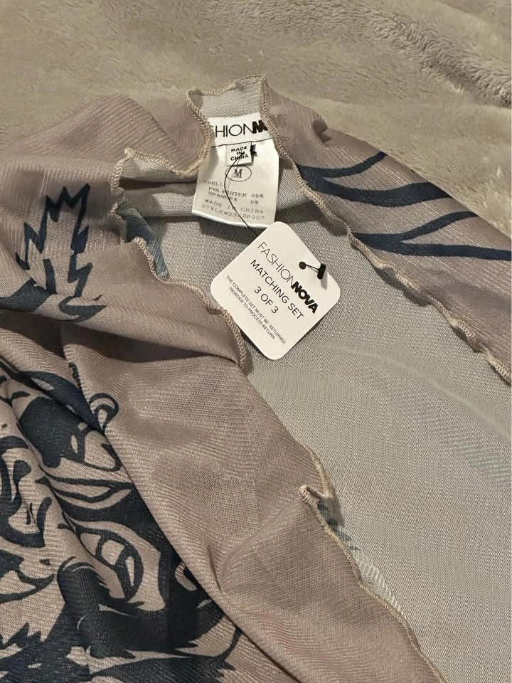 115The Wrapped Around You 3 Piece Pant Set in Taupe, size Medium, is a casual outfit perfect for spring. This set includes pants and is machine washable for easy care. The Fashion Nova brand offers a regular fit designed for women. The set is not vintage or handmade, making it a modern and comfortable choice.