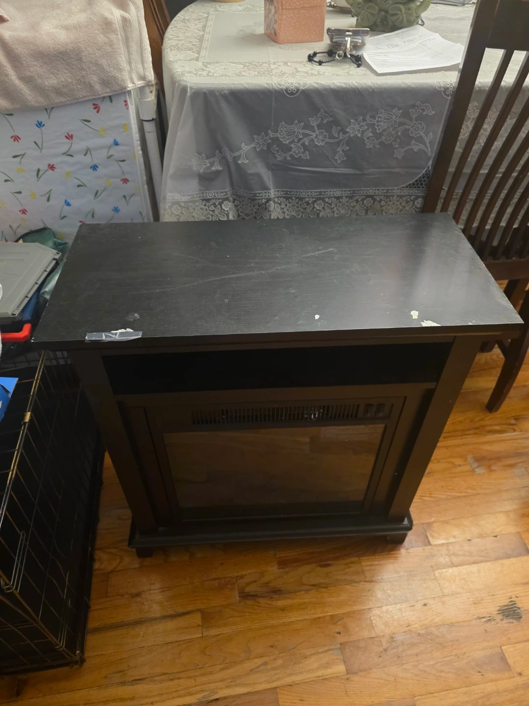 Modern Black Electric Fireplace Heater with Media Shelf