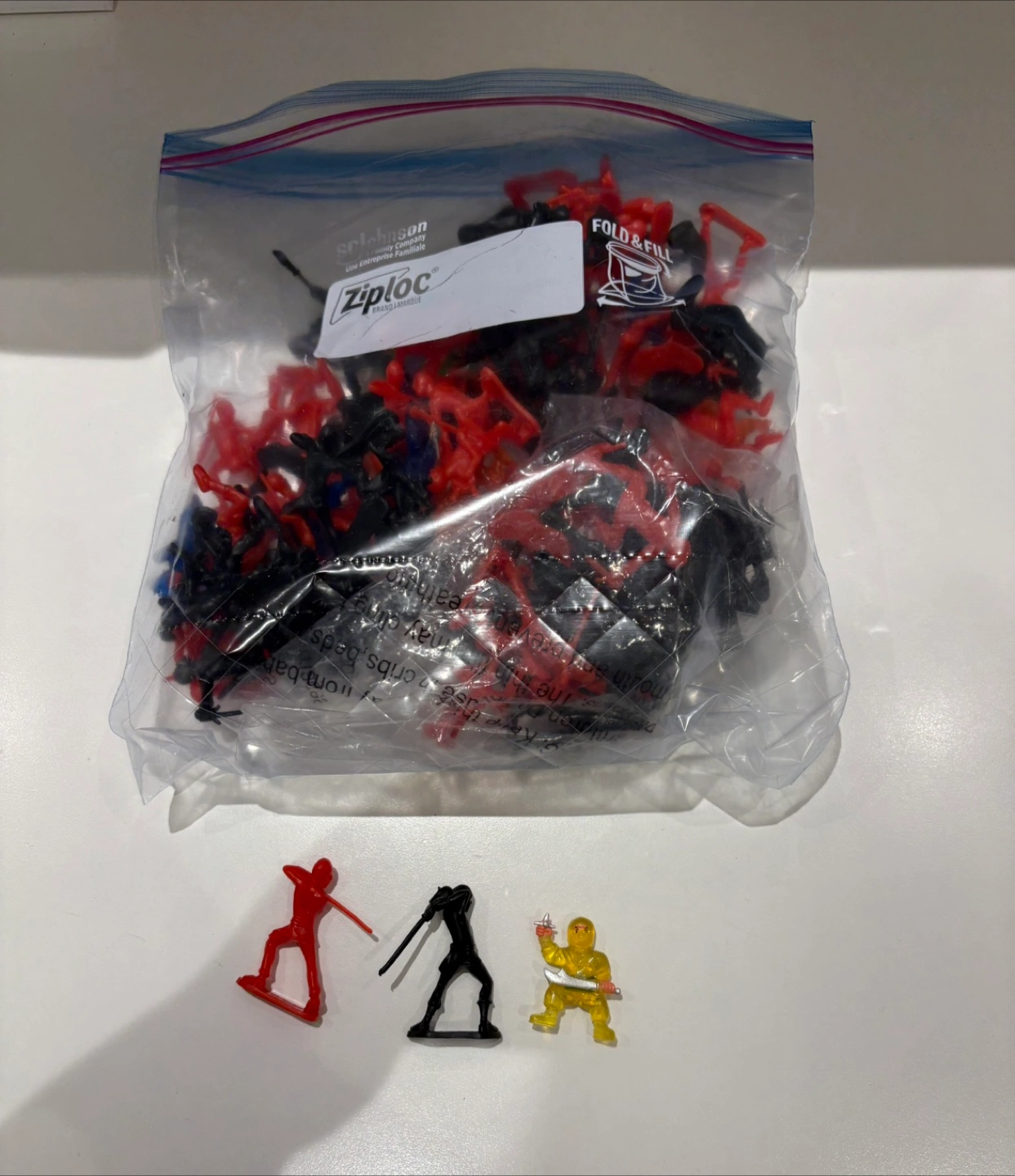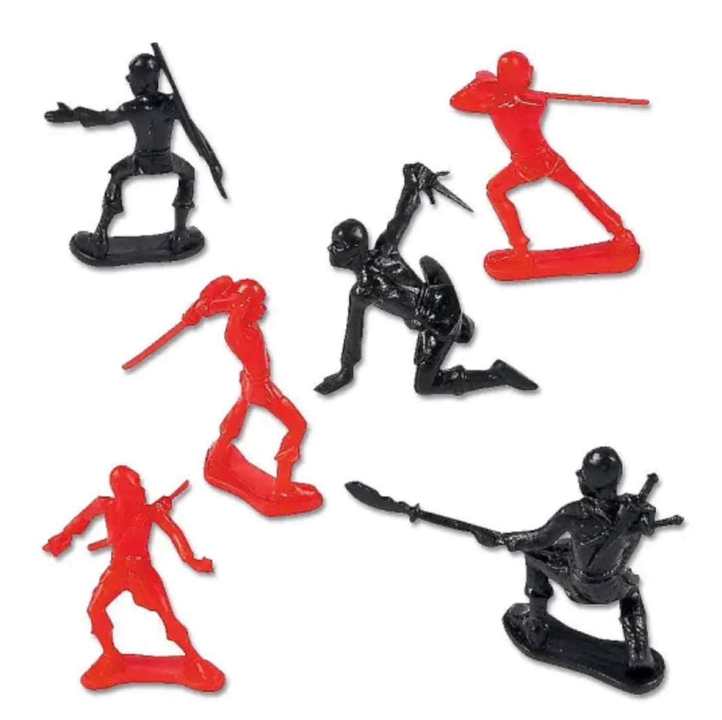 YES! Finally, you can purchase a ninja version of the miniature toy solders! These mini plastic ninja toys vary in size, but stand around 2" tall and come in a mixed big bag of red and black ninjas.