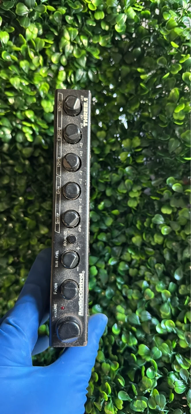 This is an AudioControl The Epilogue Three 3-channel crossover. It has selectable crossover points and sub-level control. It's ideal for car audio systems.