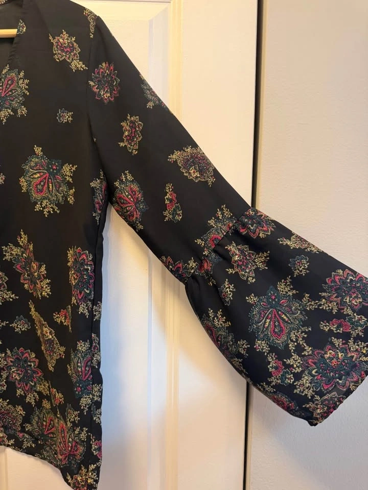 Buy & SellAbercrombie Bell-Sleeve TopAbercrombie Bell-Sleeve Top$15Abercrombie lightweight blouse with beautiful paisley floral print, v-neck, and bell sleeves. Wrinkle-resistant fabric drapes easily. Size S.WHERE TO MEETCheck LocationView MapSELLERverifiedReshmaRiver North600 reviews0 chats·0 favorites·4 viewsSEND CHAT TO SELLERHi Reshma! I’m interested in your listing.Hi Reshma! I’m interested in your listing.Get the Karrot app to chatSign In to chat