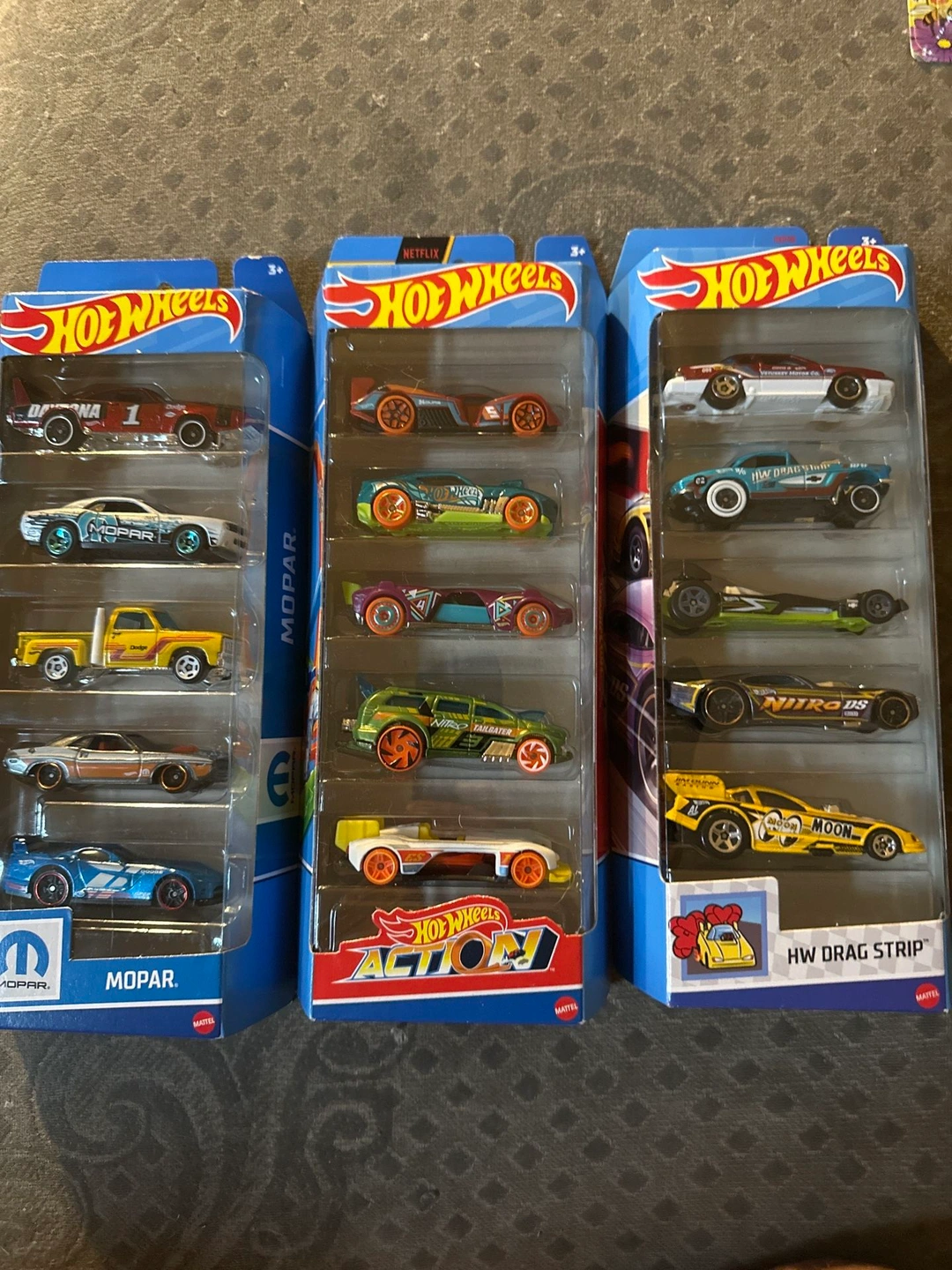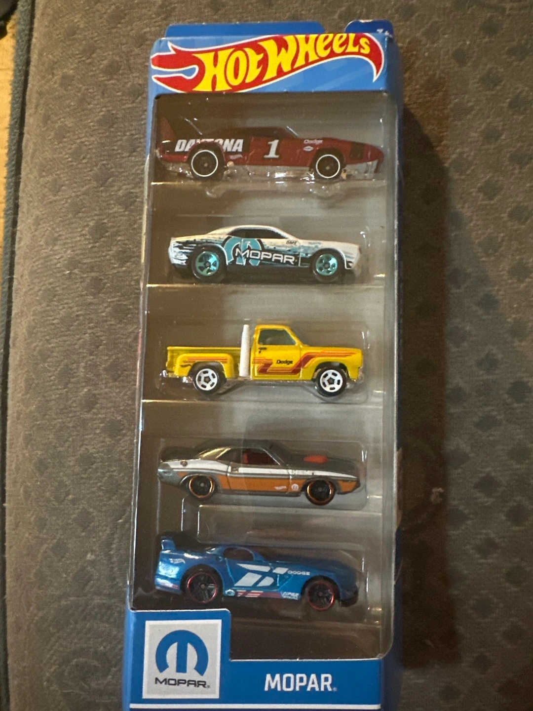 Selling a Hot Wheels Mopar 5-pack featuring diecast cars! This pack includes a variety of classic Dodge and Mopar vehicles. Perfect for collectors or kids who love cars. $15 each