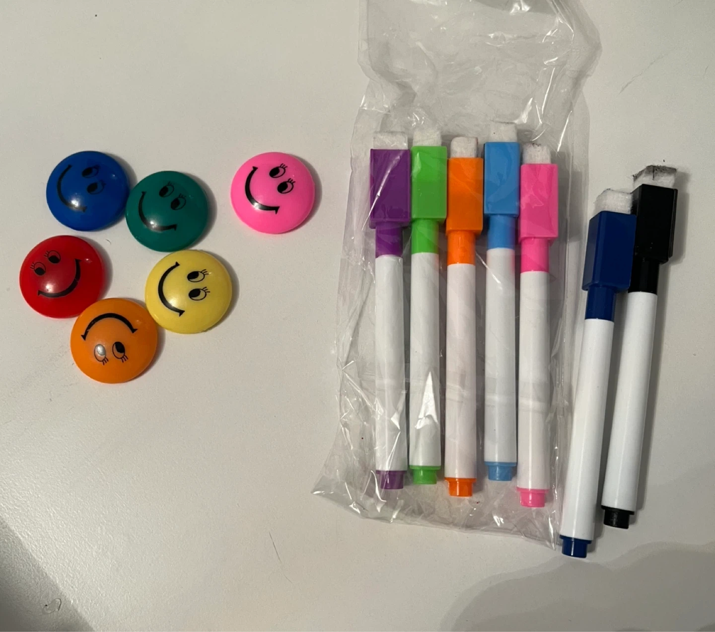 This is a magnetic dry erase calendar board, perfect for planning out your month. It includes colorful markers with erasers and cute smiley face magnets. The board has a notes section at the bottom. It's great for keeping track of schedules and appointments!