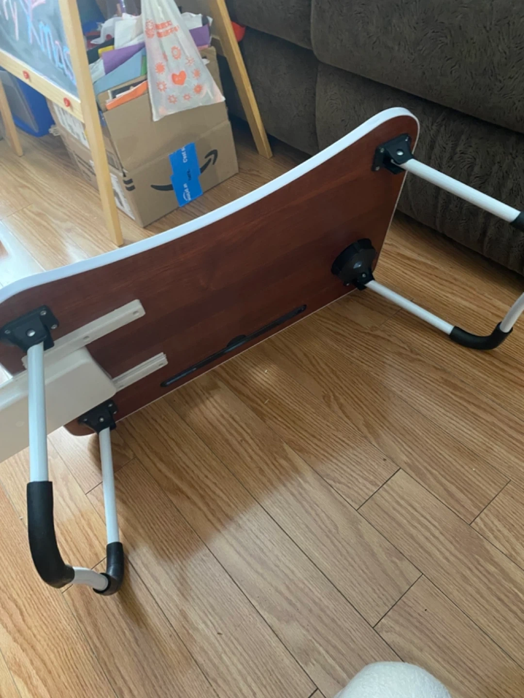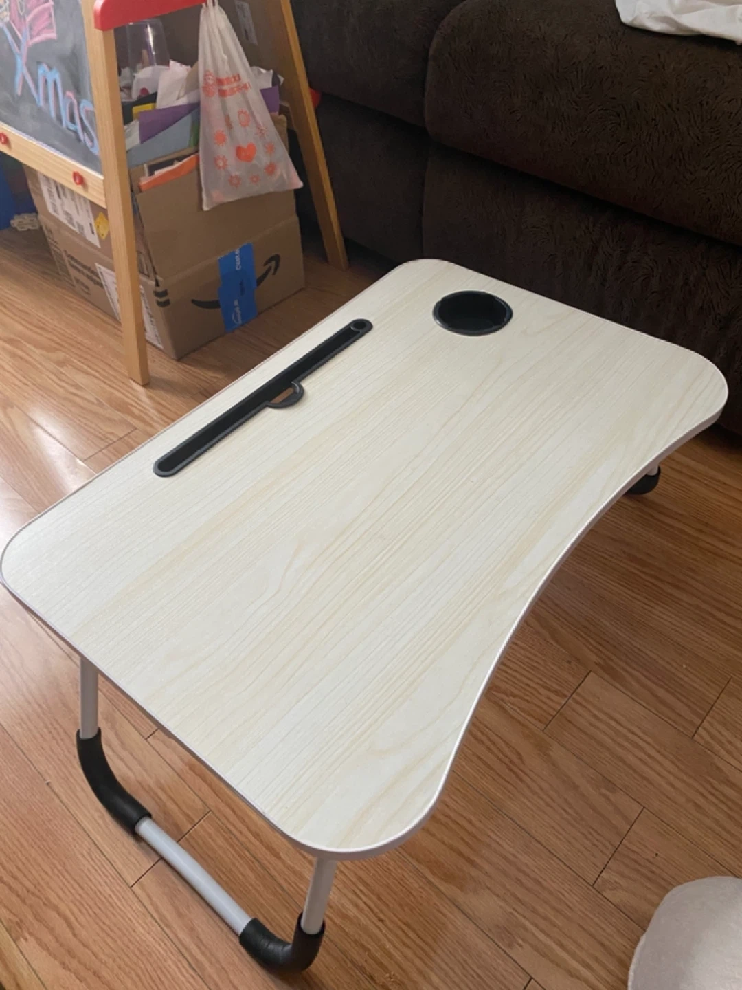 Selling a portable folding laptop bed desk! It's perfect for working or relaxing in bed or on the couch. It features a cup holder and a slot for your tablet or phone. The legs fold easily for storage
