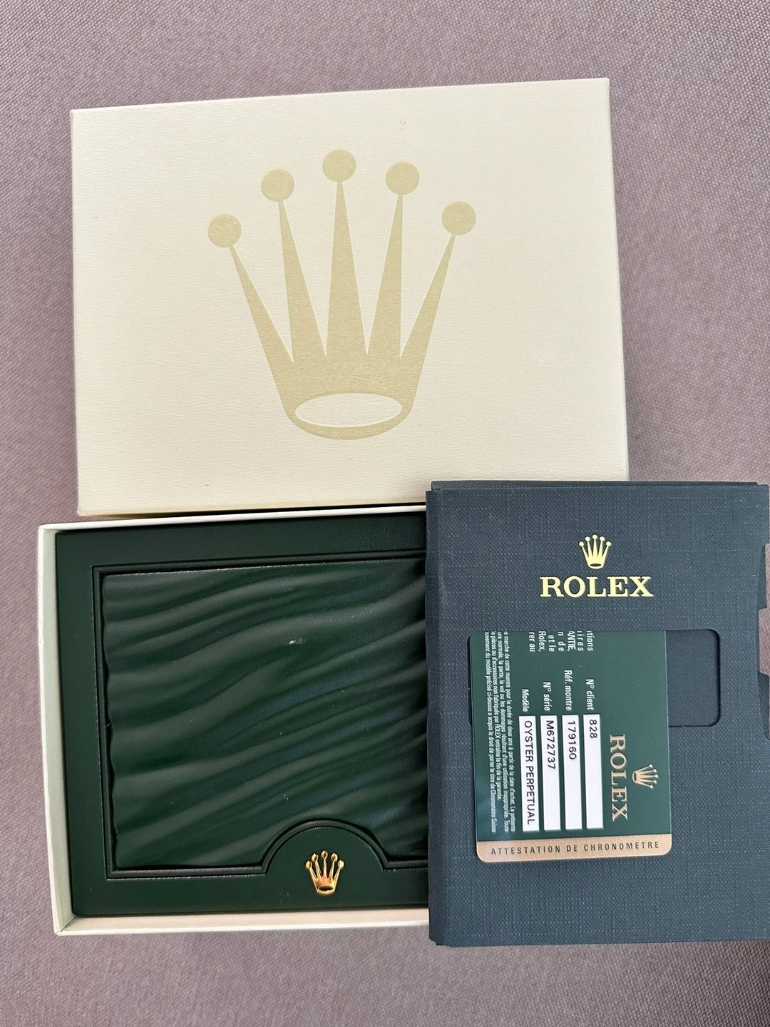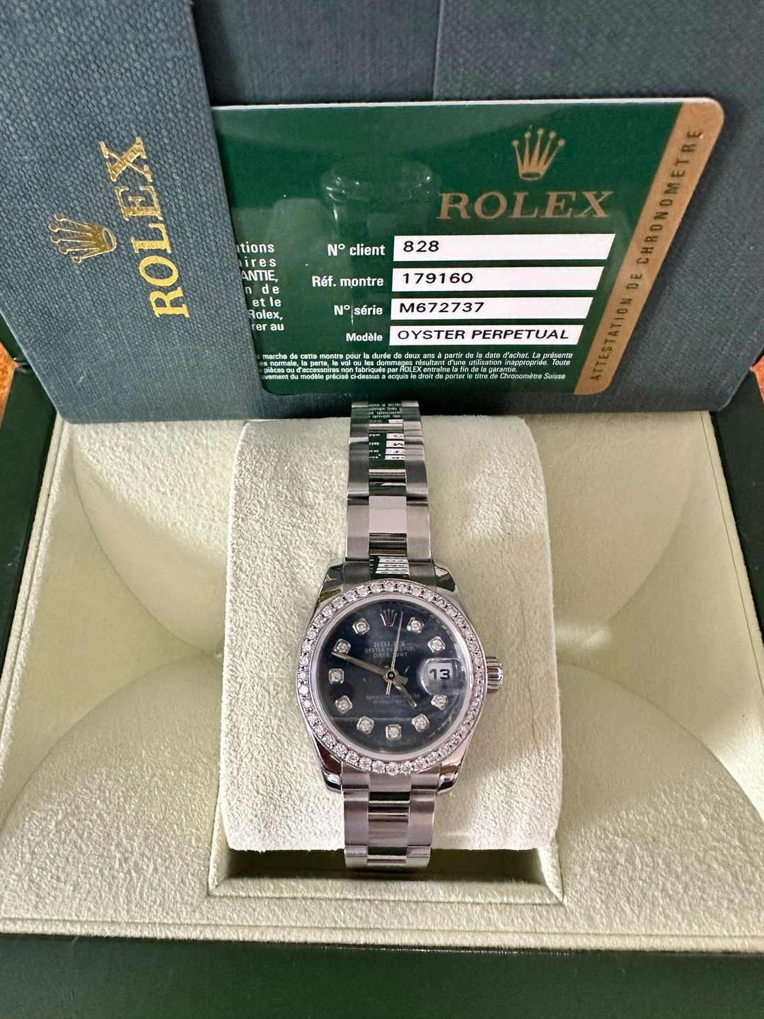 Model 179160. Condition is 9/10. Features a factory diamond bezel and diamond dial. Comes with a full-length bracelet. Includes original box and papers.
