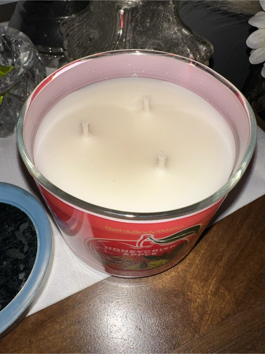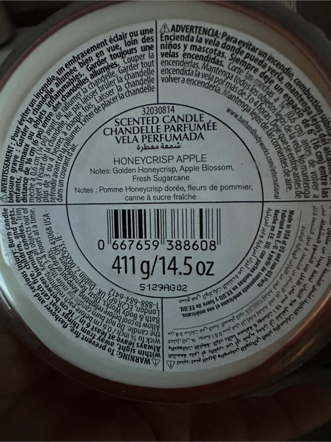 $5-Brand new -3 wick Bath & Body Works Honeycrisp Apple scented candle. It's a soy wax blend candle, weighing 411 g / 14.5 oz.