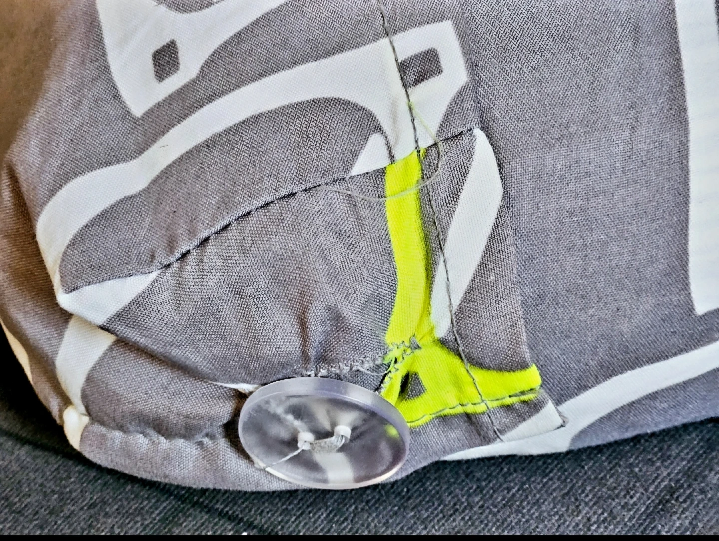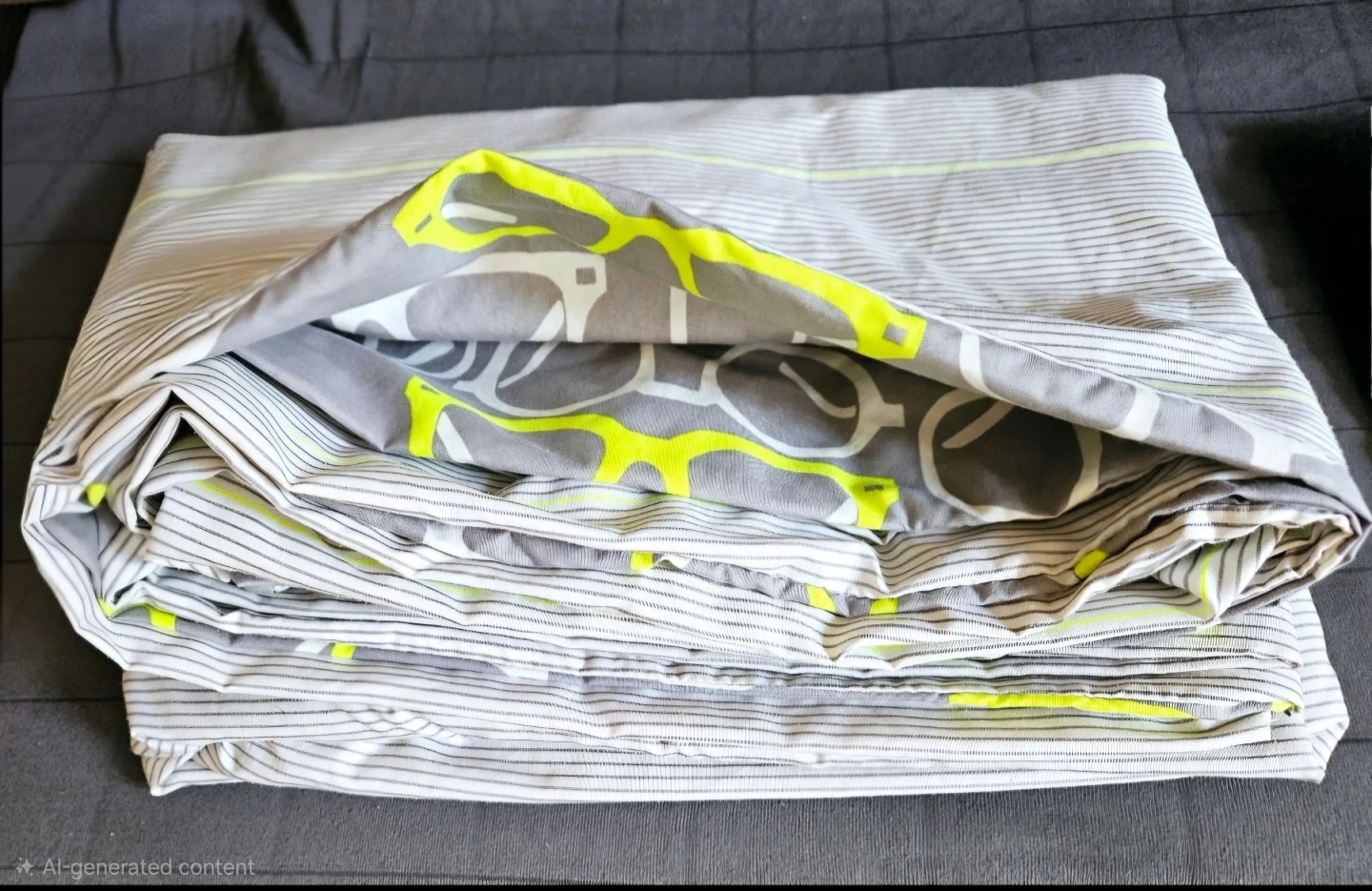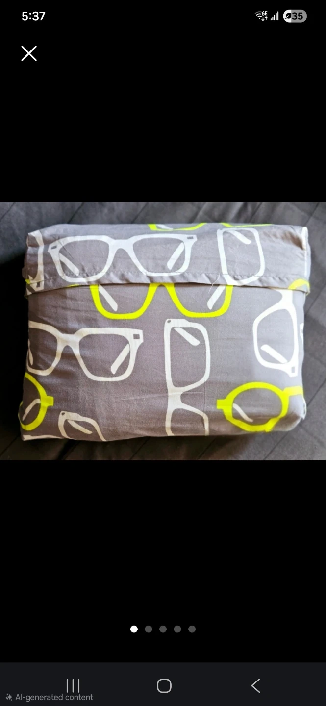 Full/Queen duvet cover set. Includes one duvet cover and one standard pillow case with a perfect case with big buttons. Grey and neon yellow glasses print.