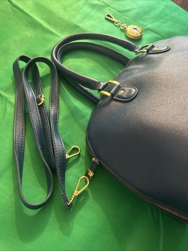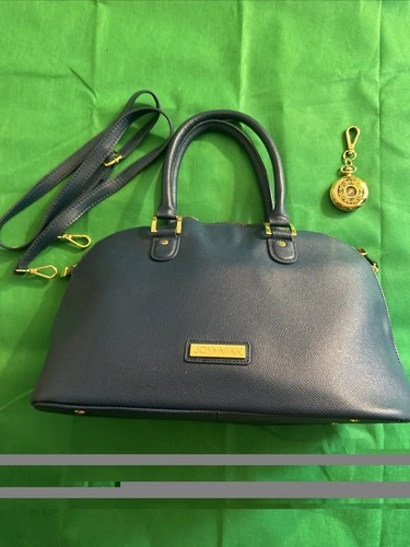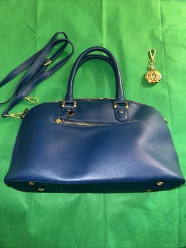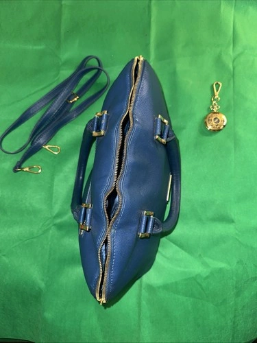 Joy & Iman Blue Pebbled Leather Satchel Purse w/ Pocket Watch
