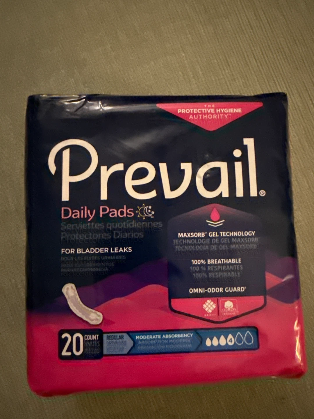 Prevail Daily Pads offer moderate absorbency for bladder leaks. They feature MaxSorb Gel Technology for quick wetness lock and are 100% breathable. This pack includes 20 regular-sized pads. Smoke-free home. Pick up/cash only. Thanks πΉ