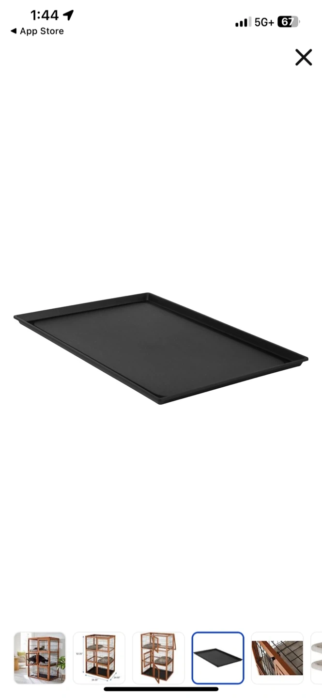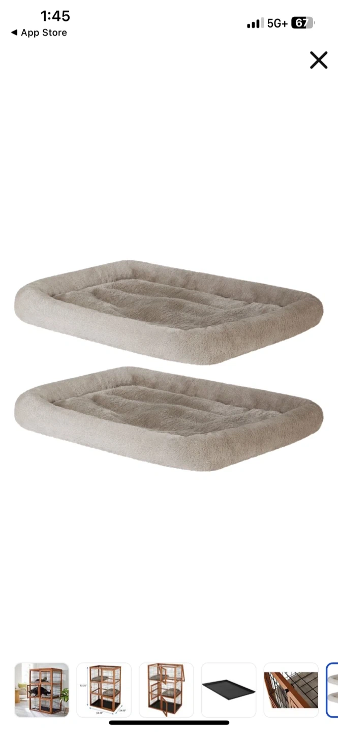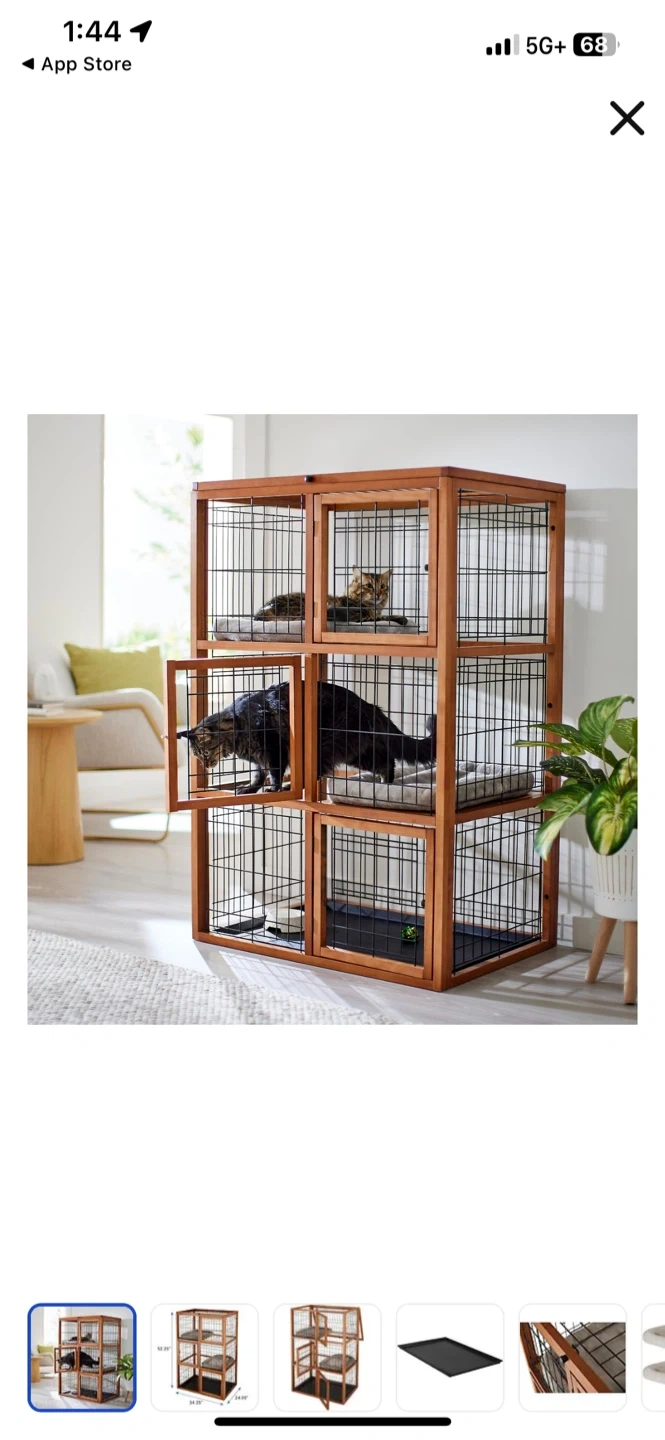 This is a Frisco collapsible wood and wire cat cage playpen with three levels. It includes two shelf boards and two cushions. Dimensions are 52.25in H x 34.25in L x 24.00in W. Great for giving your feline friends a safe and comfortable space!