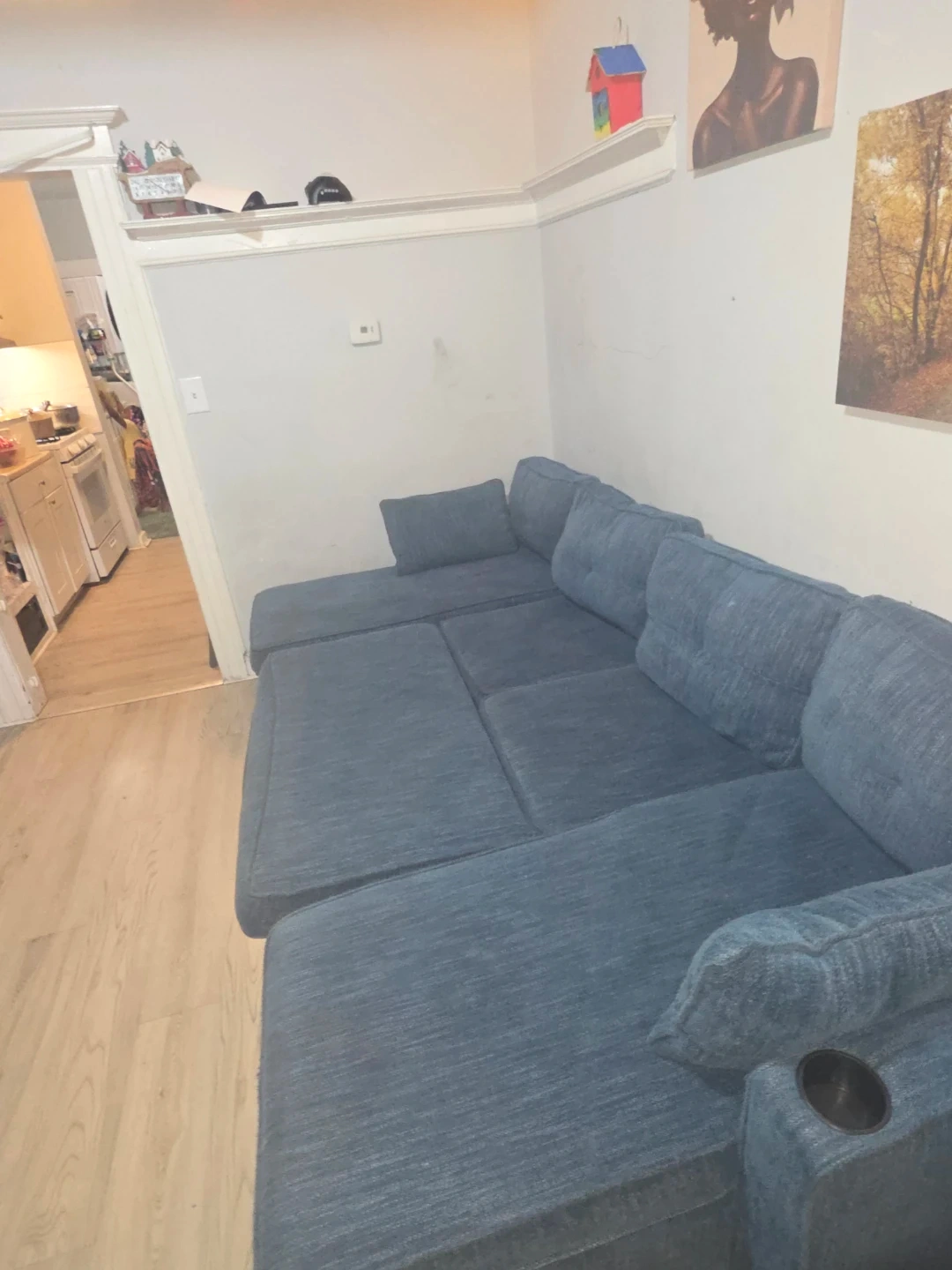 Blue Sectional Sofa with Storage and USB Ports
