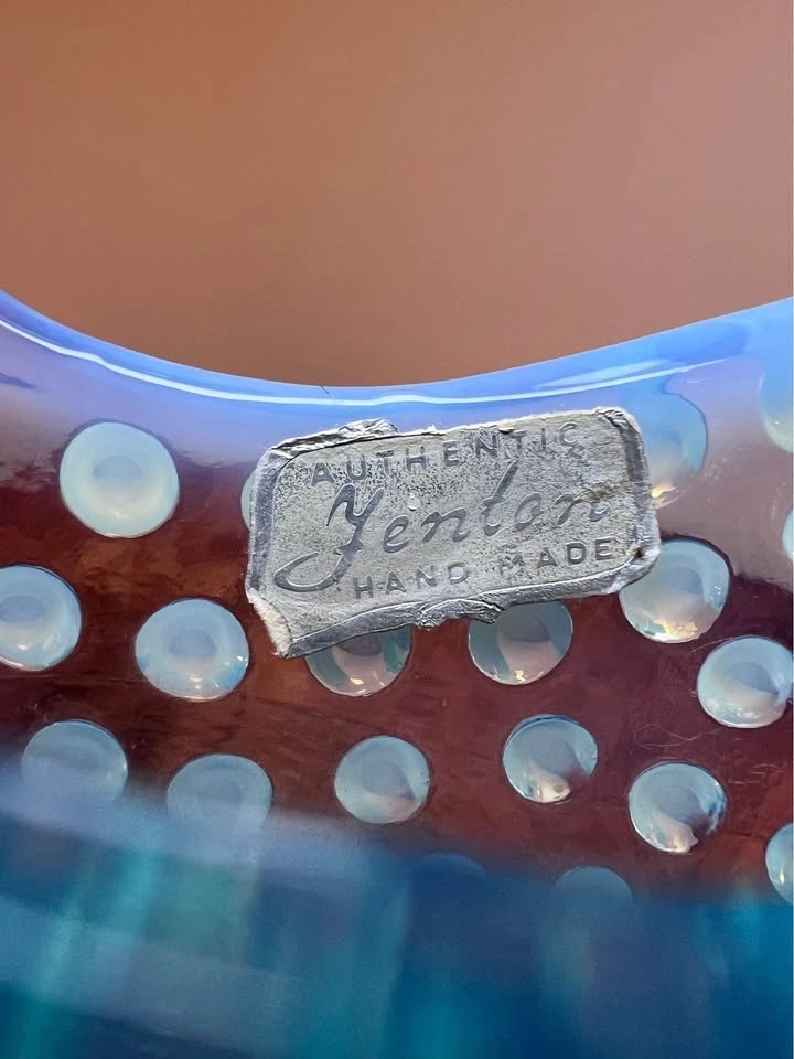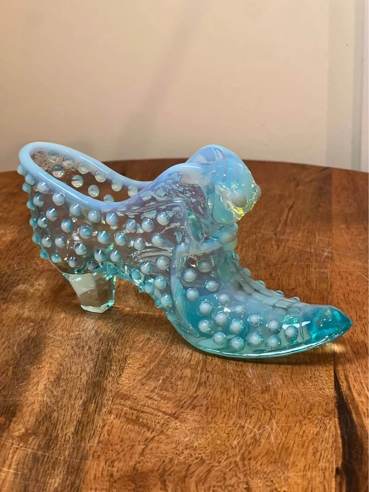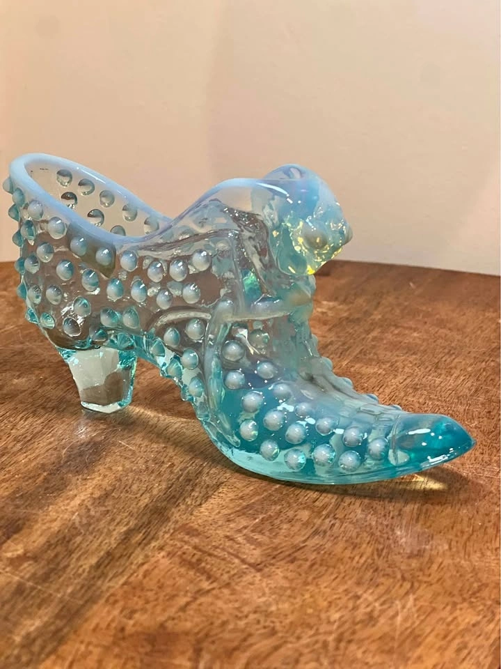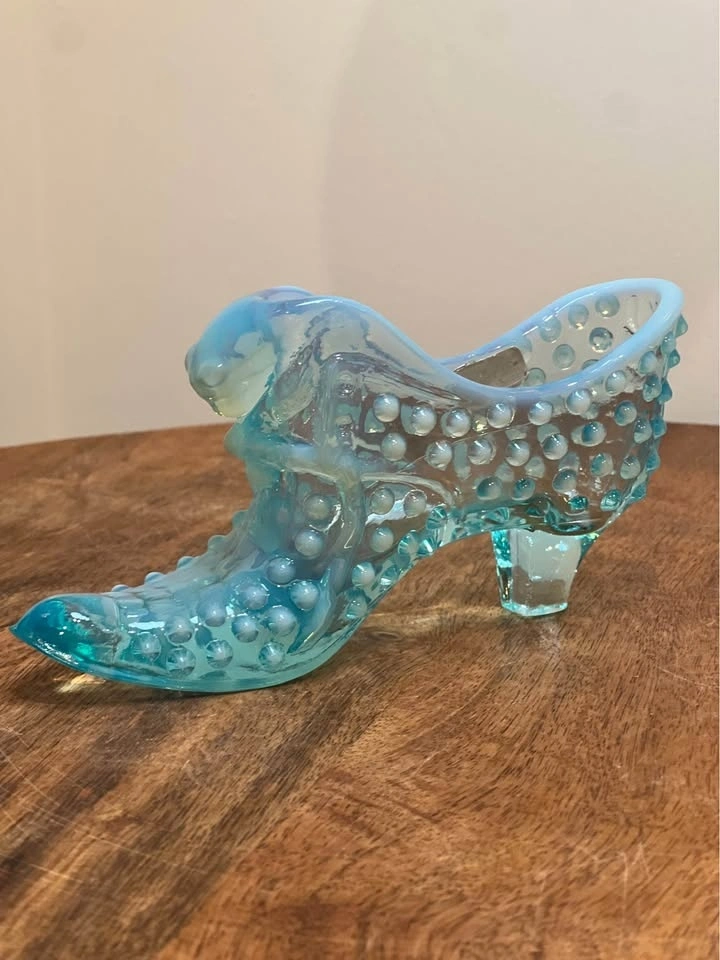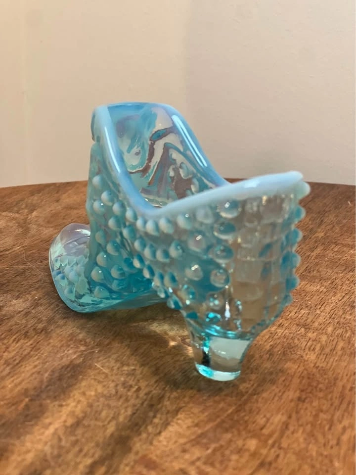 Vintage Fenton Hobnail Opalescent Blue Glass Shoe Slipper Cat