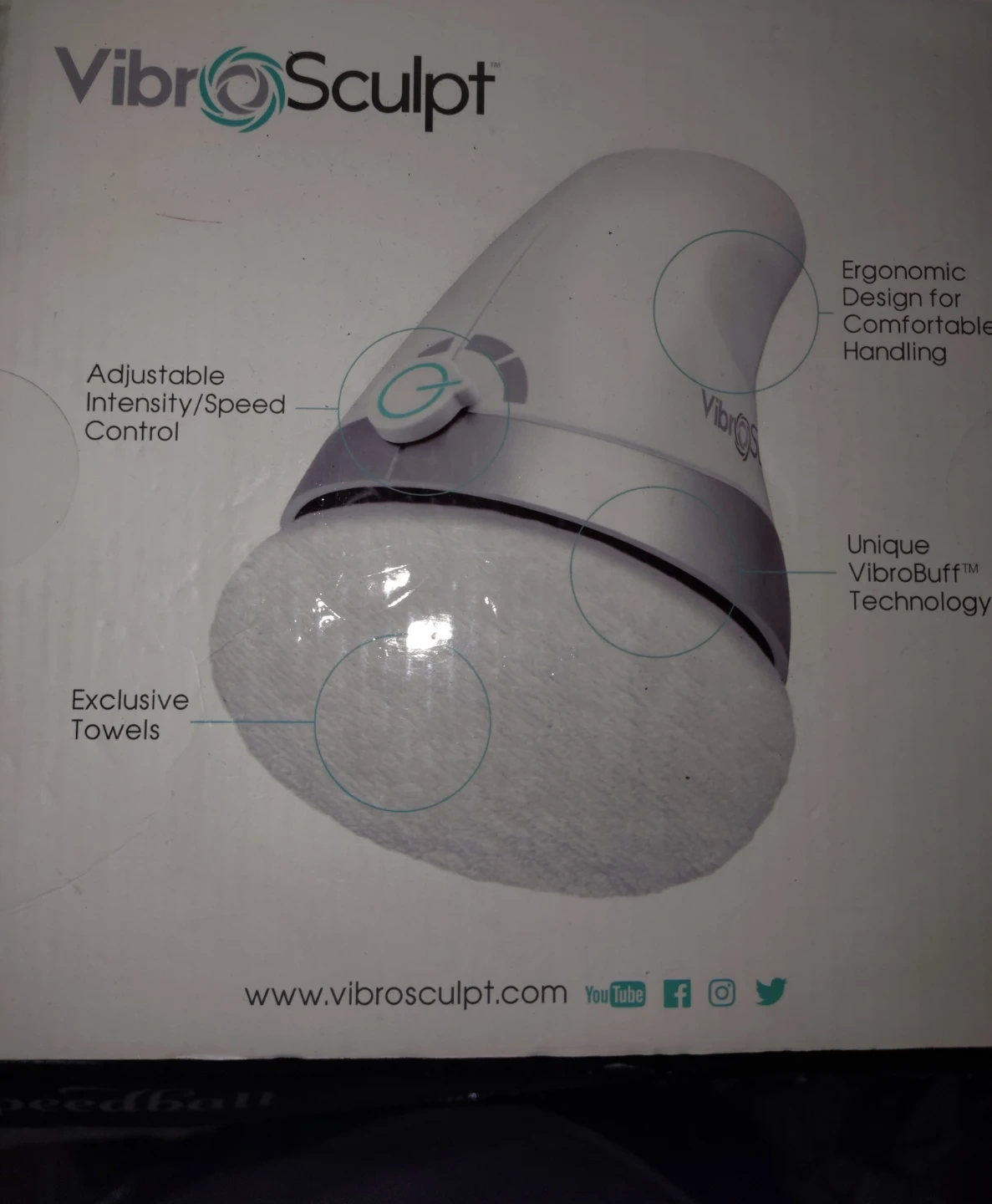 This VibroSculpt device features an ergonomic design for comfortable handling and adjustable intensity/speed control. It utilizes unique VibroBuff Technology for effective use. Includes exclusive towels.