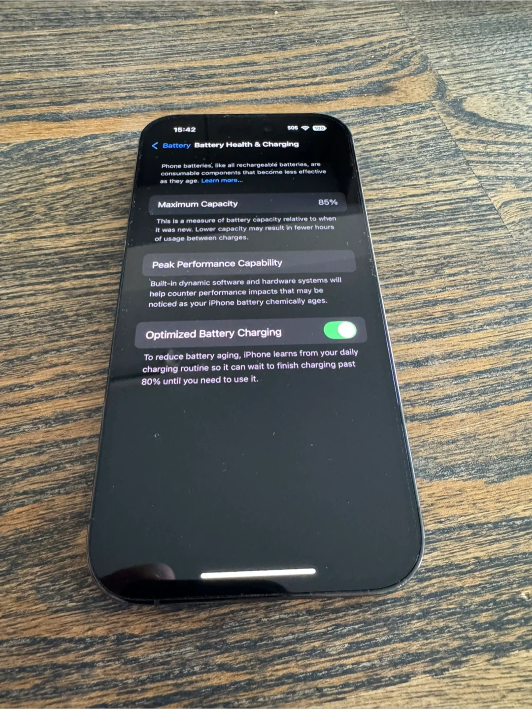 Battery health at 85%.