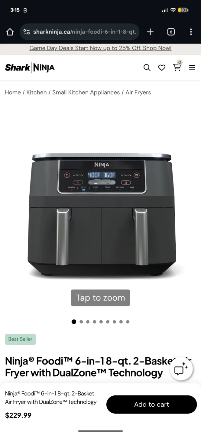 Ninja Air Fryer with DualZone 6-in-18-qt. 2-Basket