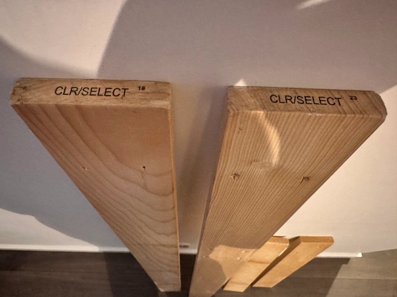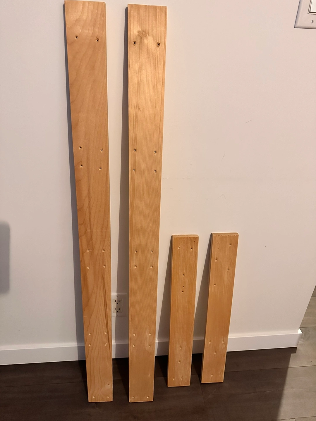2 longer wood boards are about 3’9”, 6/2”, 1”