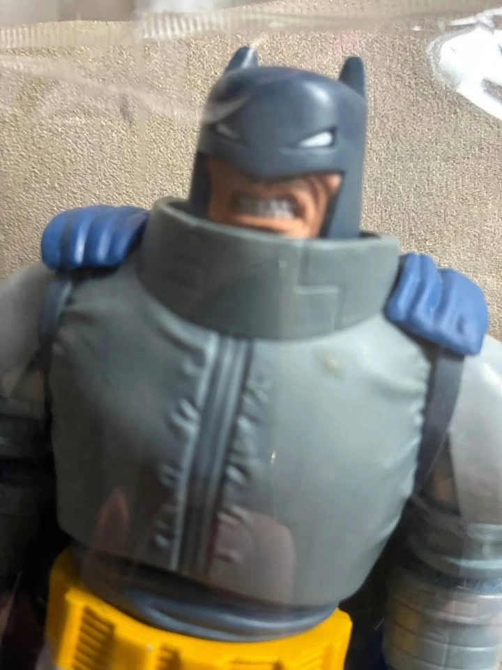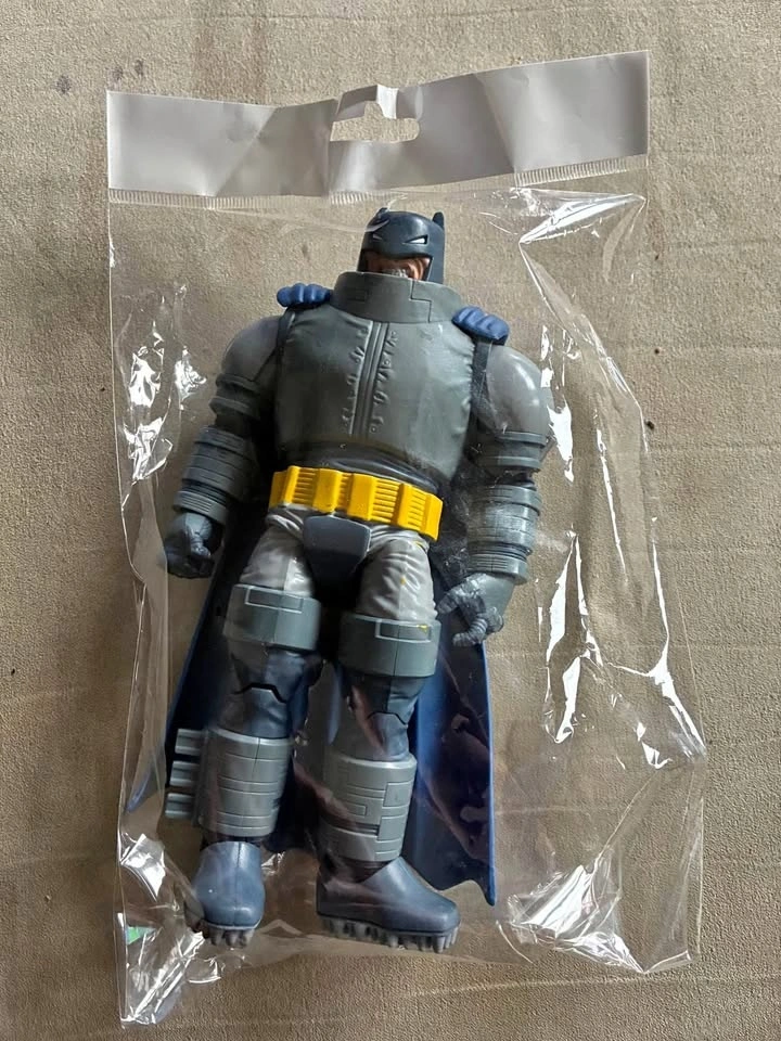 This is a DC Multiverse Armored Batman action figure, based on the suit from The Dark Knight Returns comic book series. Stands approximately 6 to 7 inches tall. Features around 20-25 points of articulation. Originally released in 2016 as part of the Mattel DC Multiverse line. Known for its detailed sculpt and iconic design elements from the graphic novel.