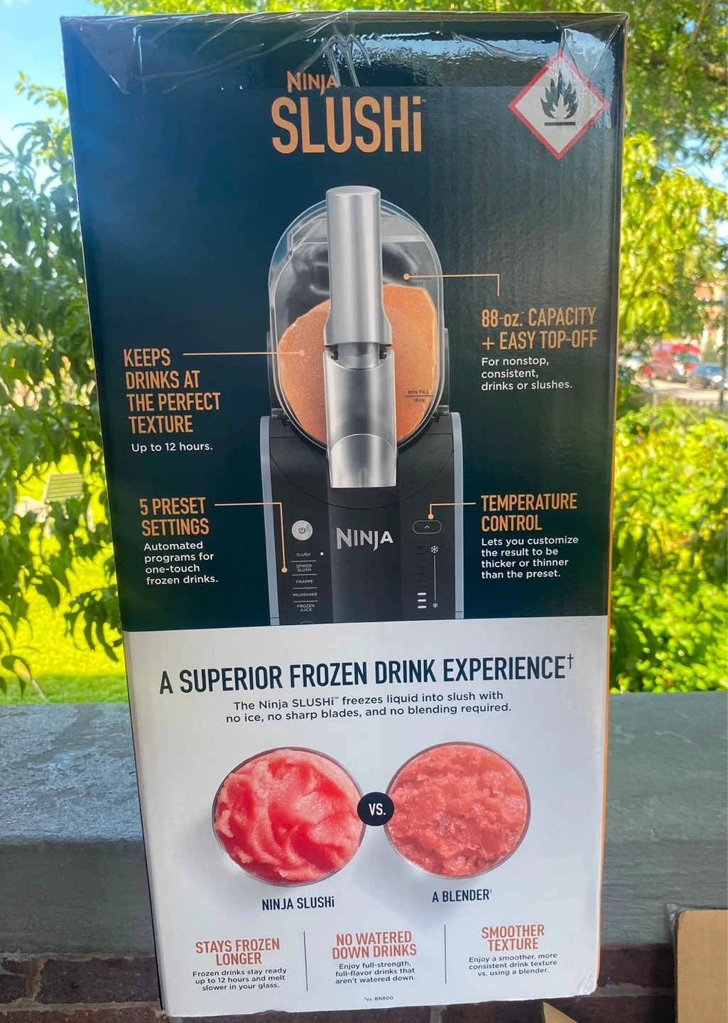 Get ready to enjoy frozen drinks without the hassle of ice, sharp blades, or blending! This Ninja Slushi maker is brand new in the box. It features: