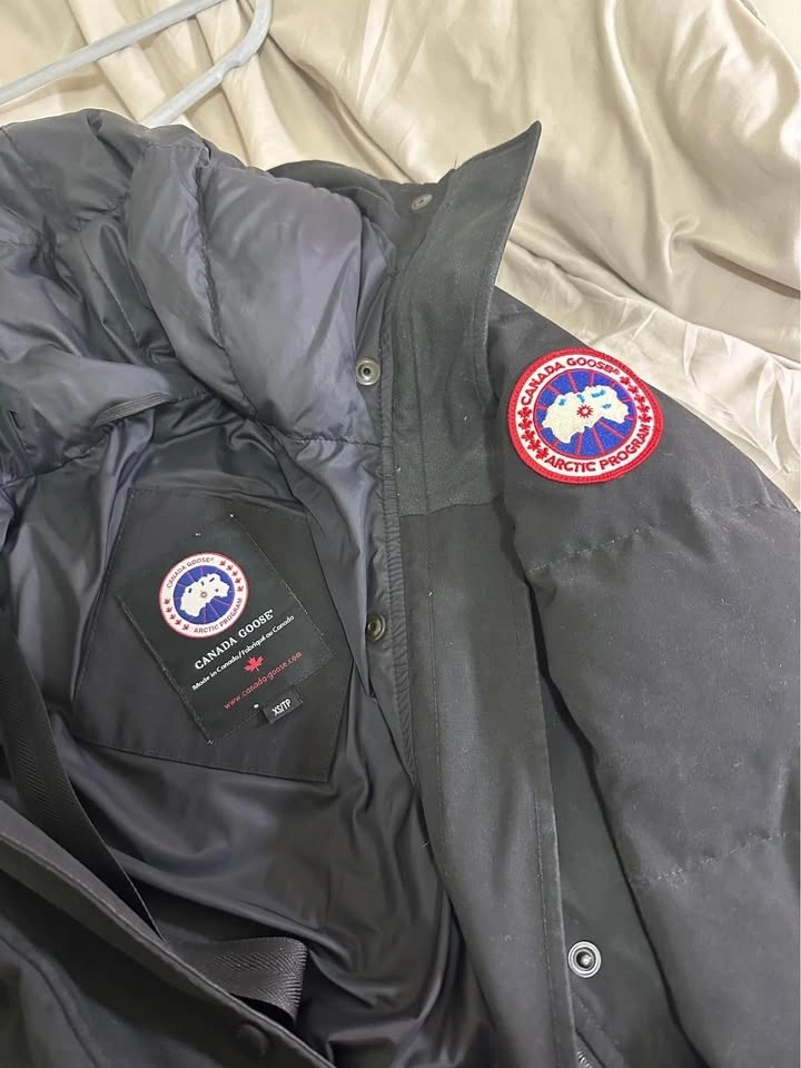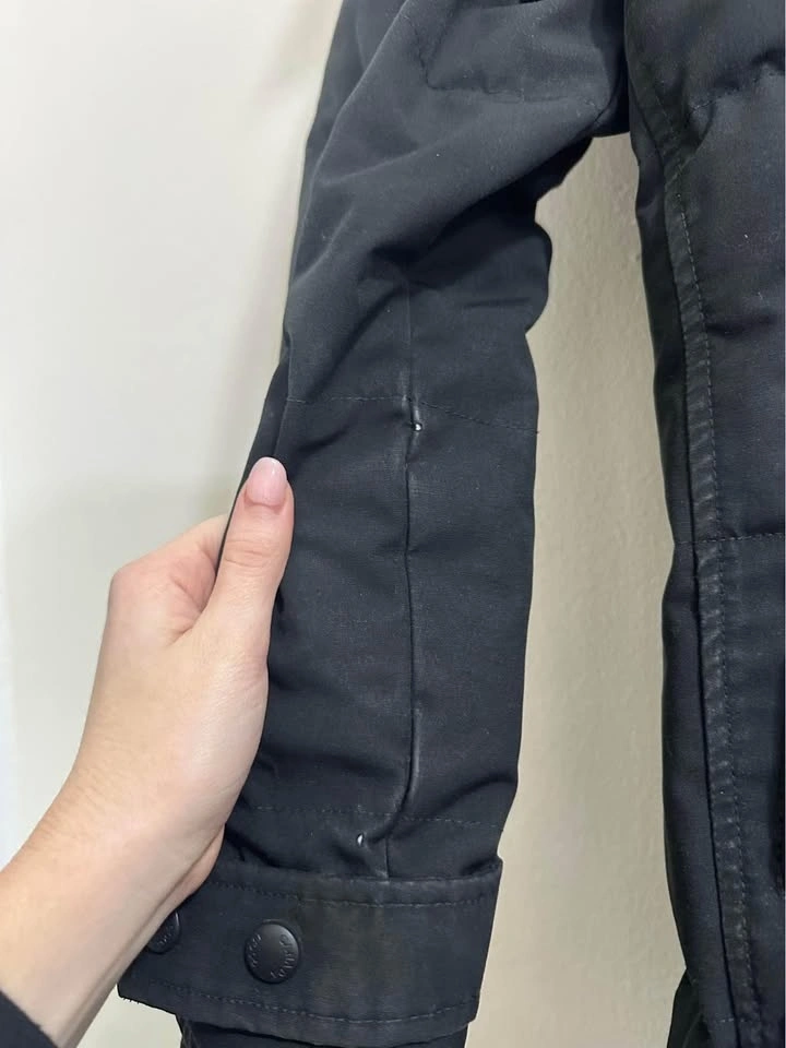Authentic classic Canada Goose Shelburne jacket (style no. 3802L). XS/TP. In decent condition, a few small rips on sleeve (as pictured) and normal signs of wear. Hasn’t been professionally cleaned but would look perfect after dry cleaning if you wanted! Retails for $1,650. Pickup in Soho or local meetup