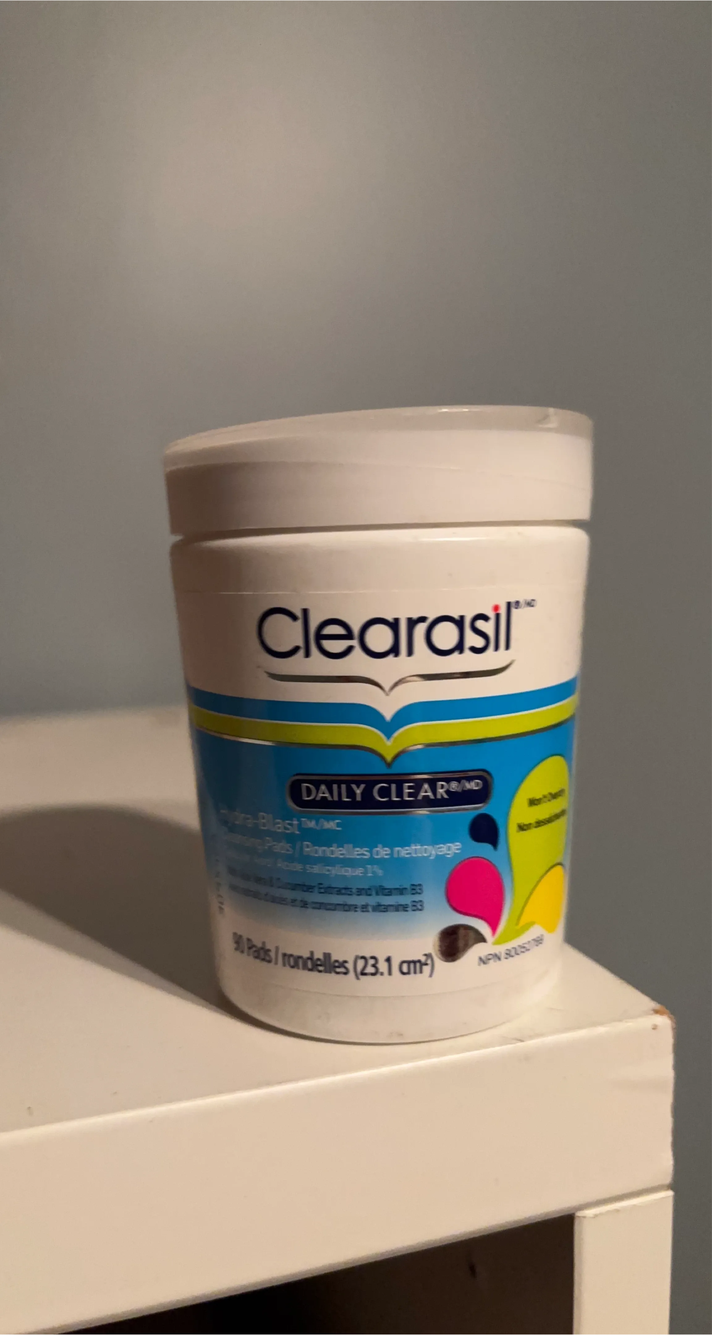 Selling a container of Clearasil Daily Clear pads. It contains 90 pads and is designed for daily cleansing. It contains salicylic acid 1% and cucumber extracts and vitamin B3. Brand new. Never used.