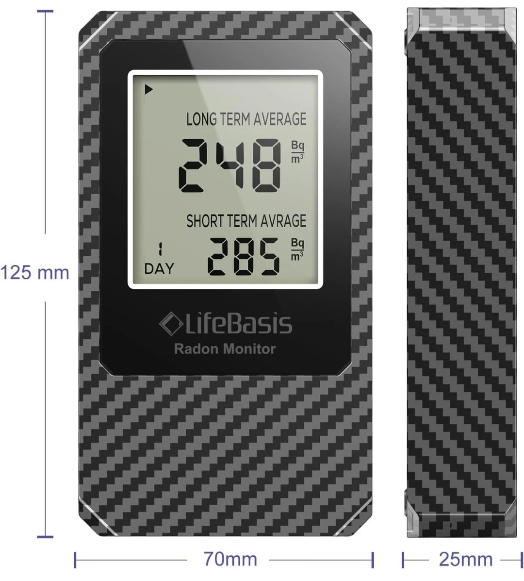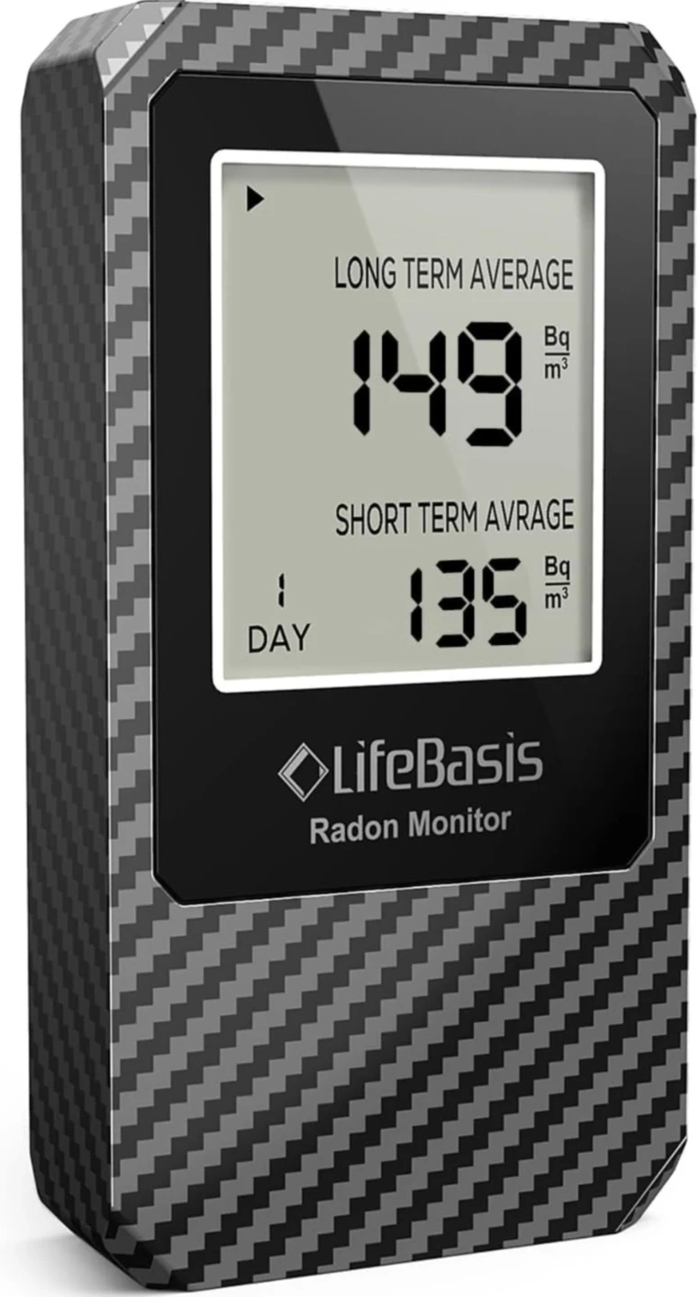 LifeBasis Radon Detector / Home Radon Monitor, Dark Grey Color (Carbon Fiber Pattern). New (Open Box).
