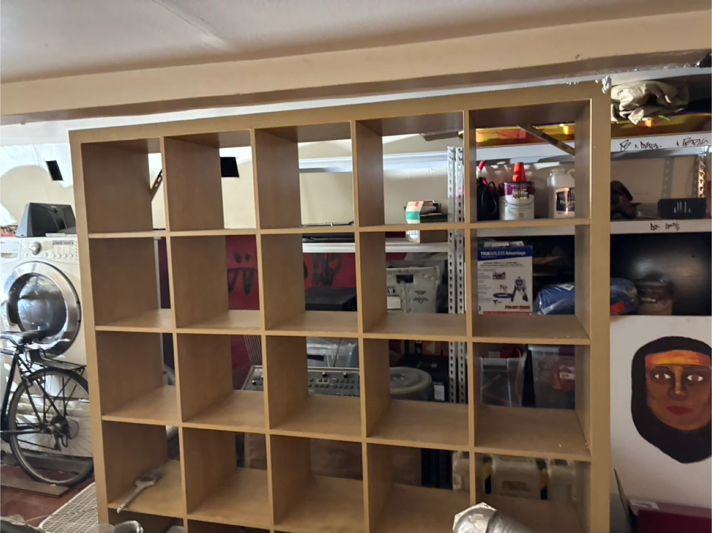 Two cube storage shelving units. One is a large 5x5 grid shelf, and the other is a 4x5 grid shelf. Both are open-backed for easy access. Great for organizing books, decor, or other items!