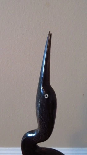 Vintage 60s Bird Stork Egret Heron Crane Carved Horn Figurine