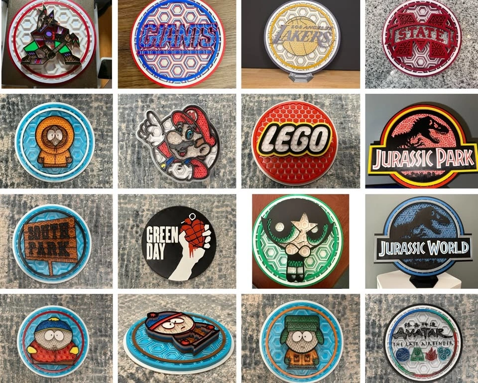 These are just a few samples. Many more to choose from. I can make any sports team mascot/logo with name and corresponding colours. Most game or movie character. Anything you can think of just ask me to see if I have it. Every print is 11 inches in diameter unless there is something coming off the plate like a hand or shape of logo. They can be mounted on the wall with 3M command strips which are included or they can be placed on a table or stand. A plate holder stand is also included. These are very difficult to create hence the price. You will have to pick it up from my house.