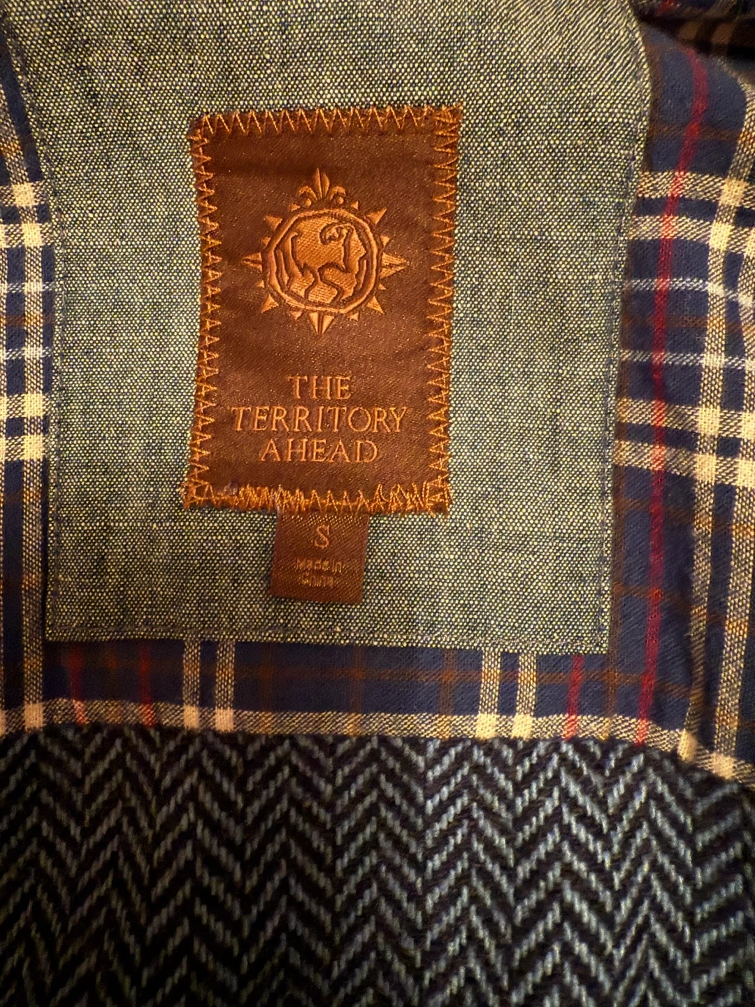 Here's a great shirt jacket from The Territory Ahead! It features a stylish herringbone pattern and is a size small. Perfect for layering!