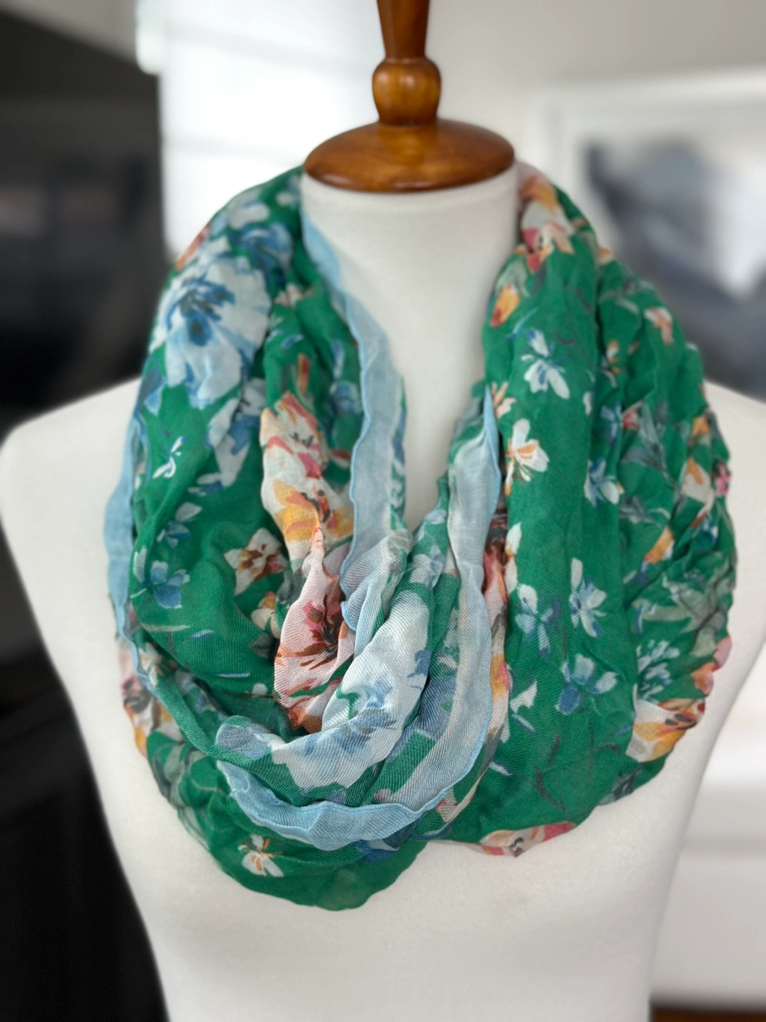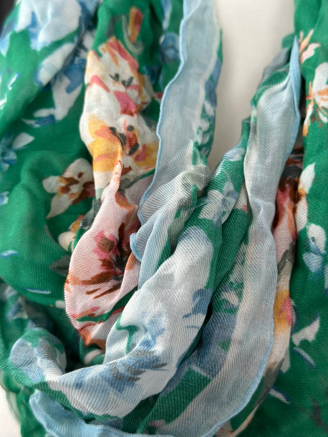 Lightweight infinity scarf. Features a green and blue floral print. Soft and comfortable material. Perfect for spring . New with tag from Loft