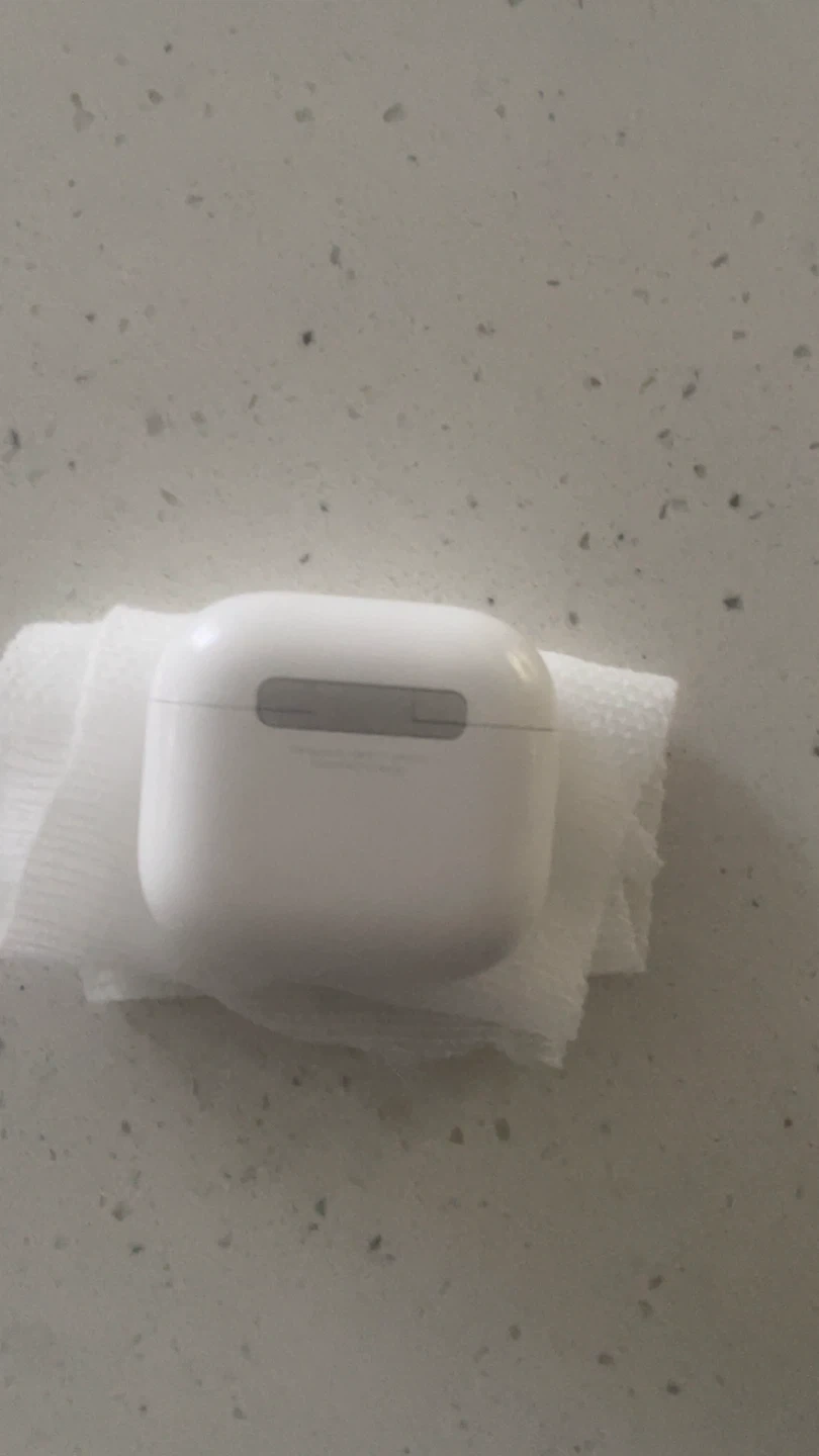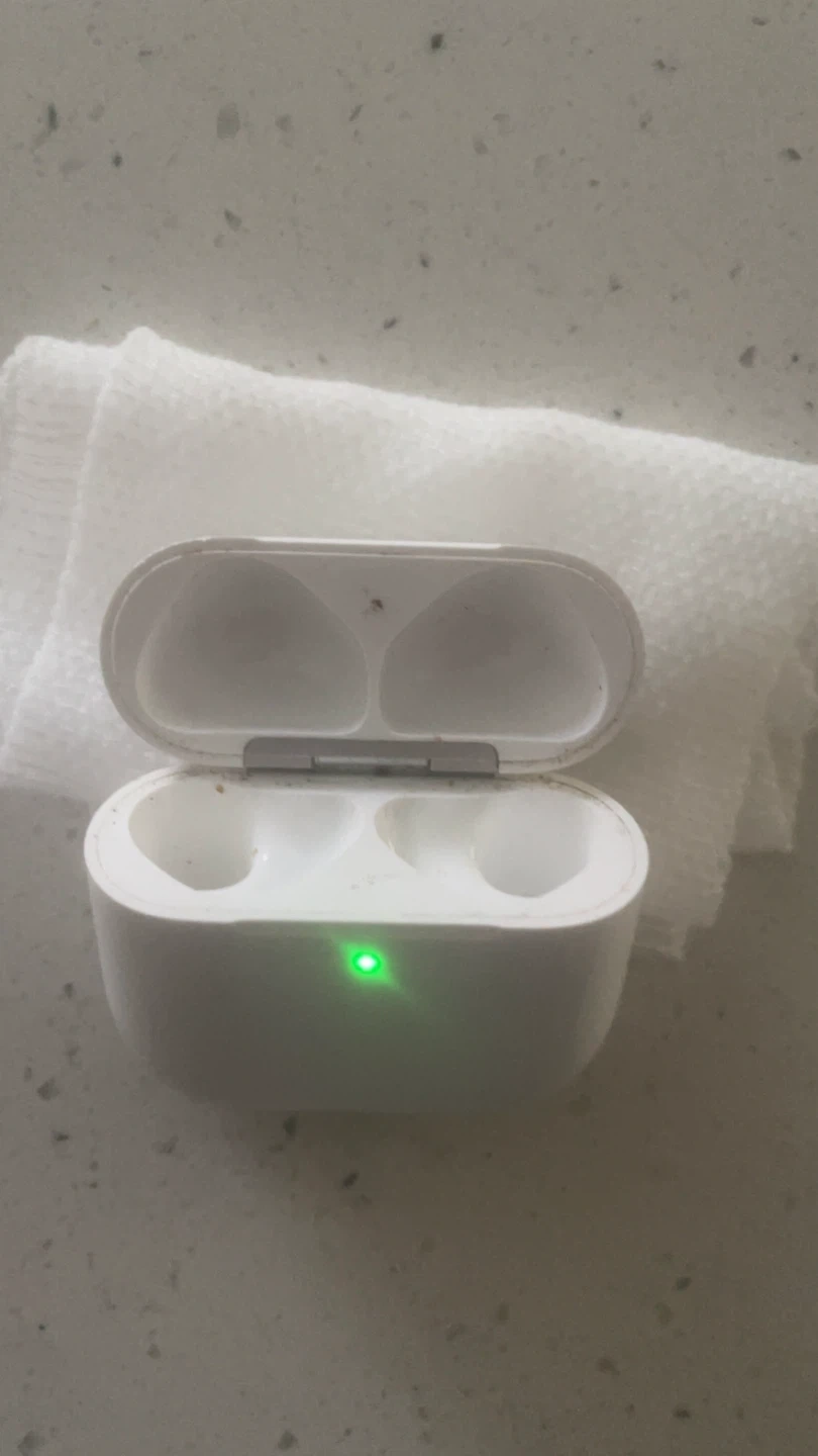 This is a replacement charging case for Apple AirPods Pro (4th Generation). It's white and has a green charging indicator light. A great way to get your AirPods working again!
