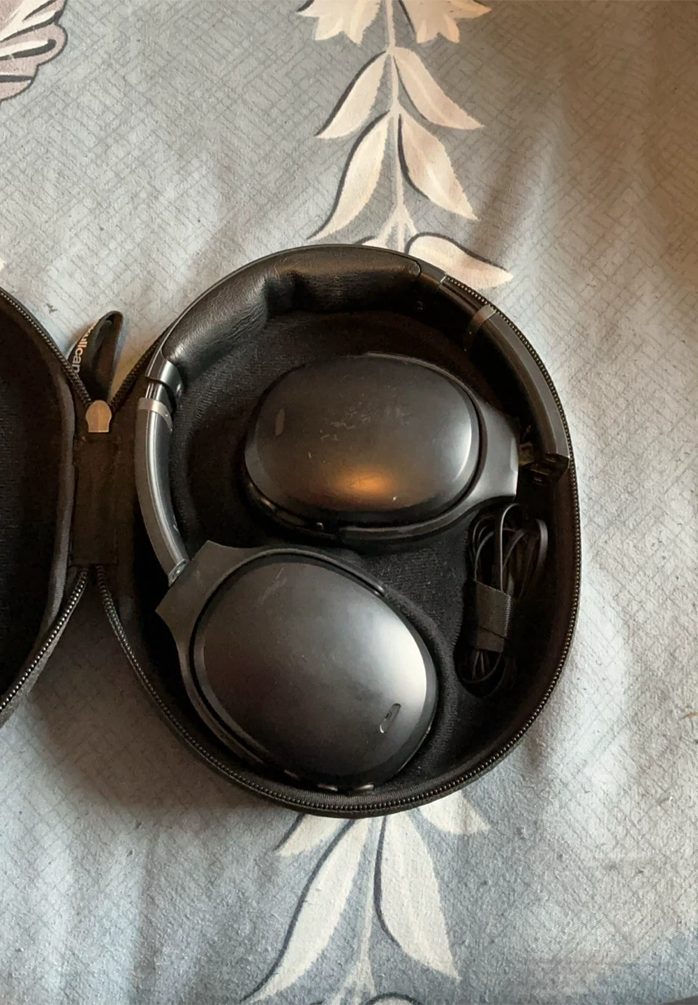 Black Skullcandy wireless over-ear headphones. Comes with a protective hard case and charging cable. It's in great condition!