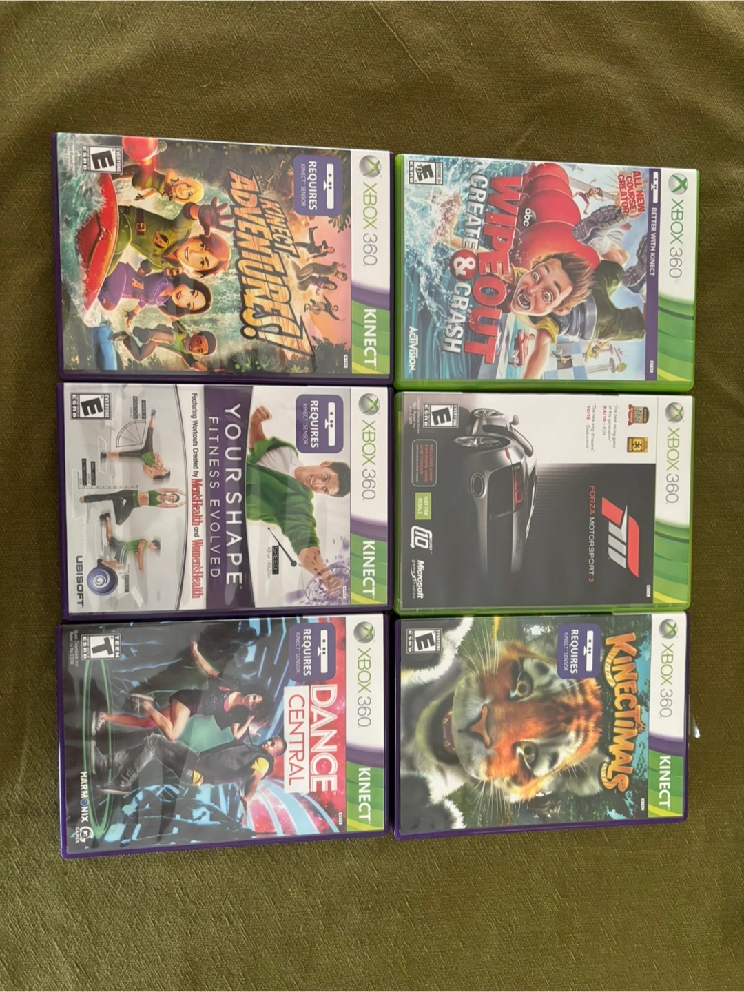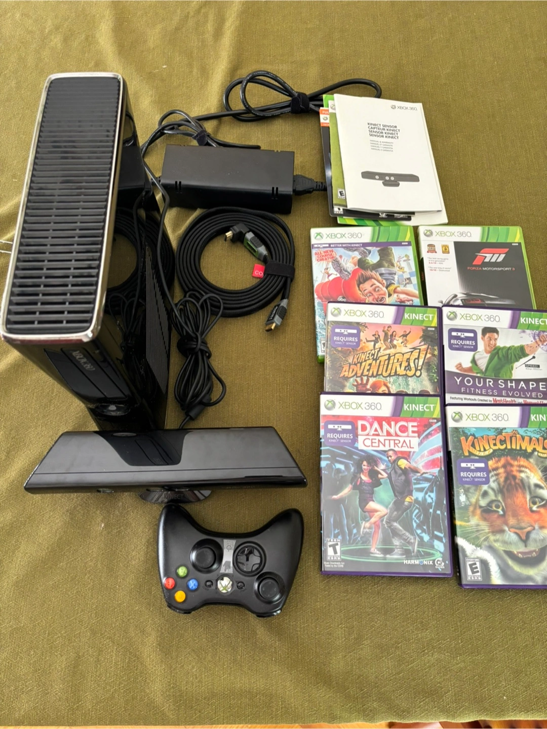 Xbox 360 console with original instructions. One controller and 6 games pictured. Console has the higher memory. Great starter gaming system. Barely used.
