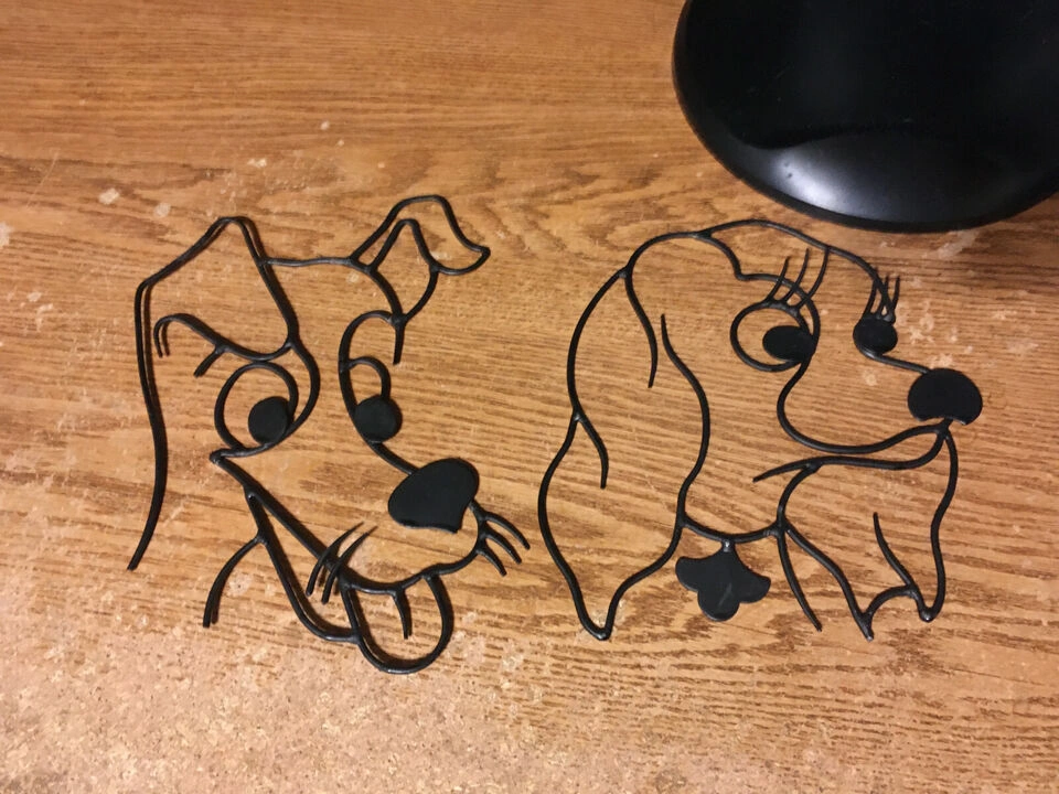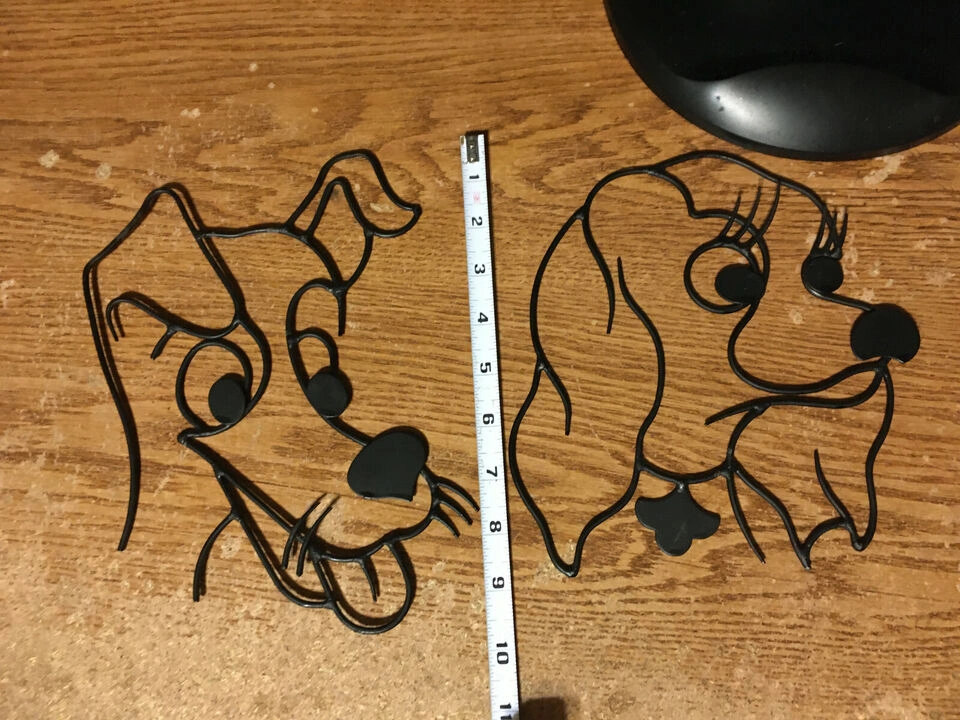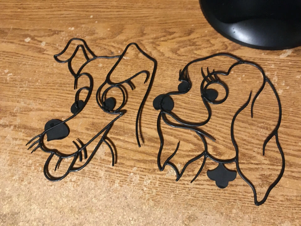 Pair of metal wall art depicting Lady and Tramp from Disney's Lady and the Tramp. Black metal. Approximately 7 x 9 inches. Great for Disney fans! pick up at house