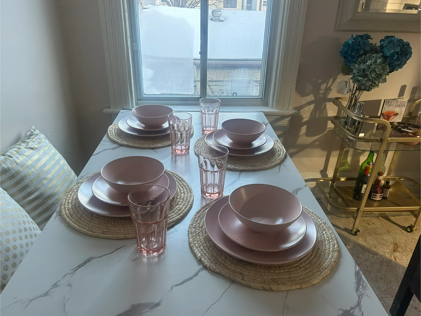 Ikea Dish Set-6 pink ceramic bowls and side plate and 5 plates (there was an incident).