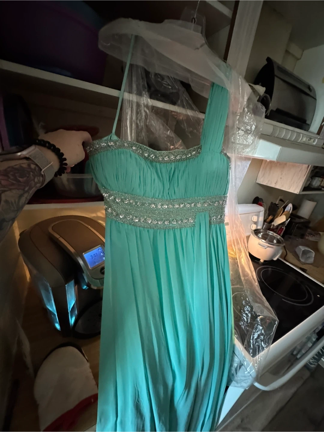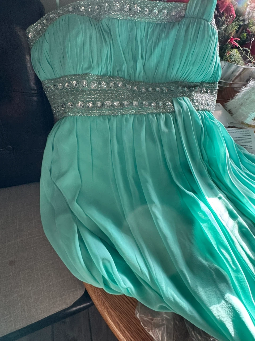 Aqua Formal Dress with Embellishments