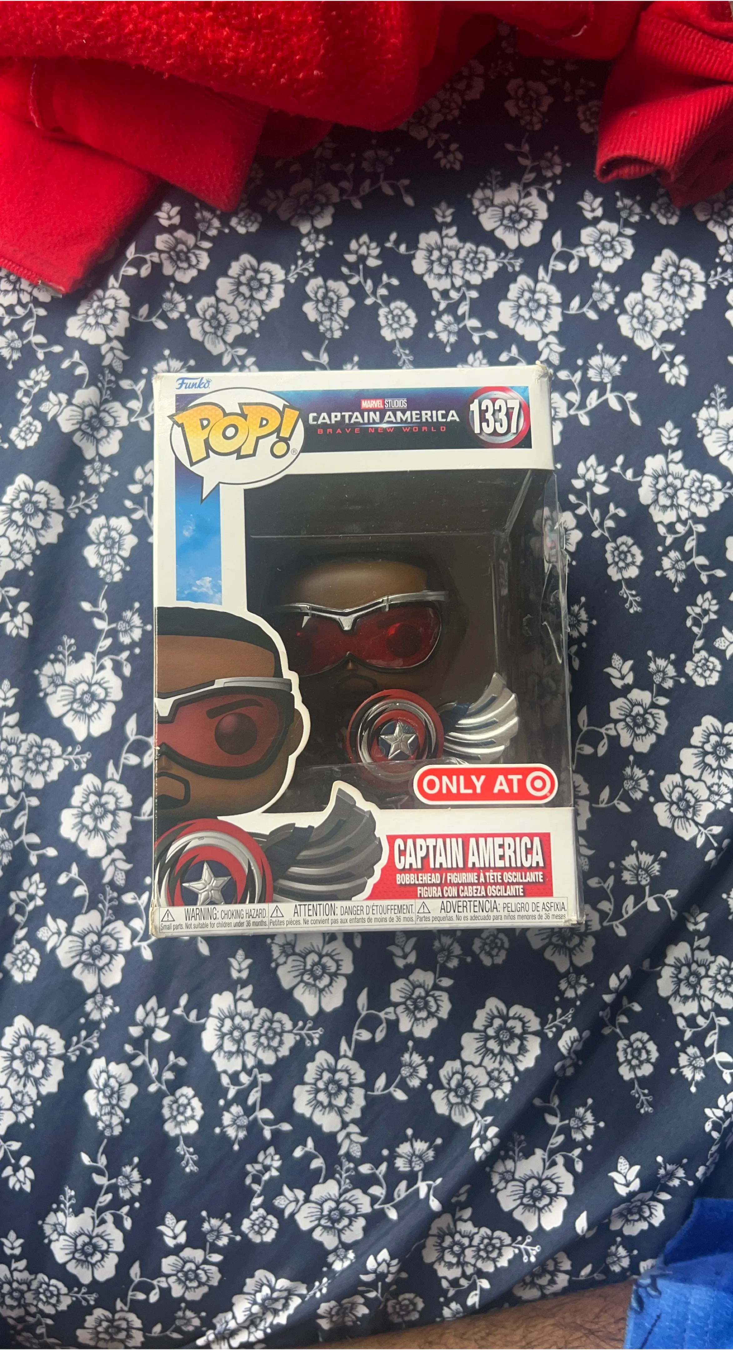This is a Funko Pop! bobblehead figure of Captain America from Marvel Studios. The figure is number 1337. It's in its original box.
