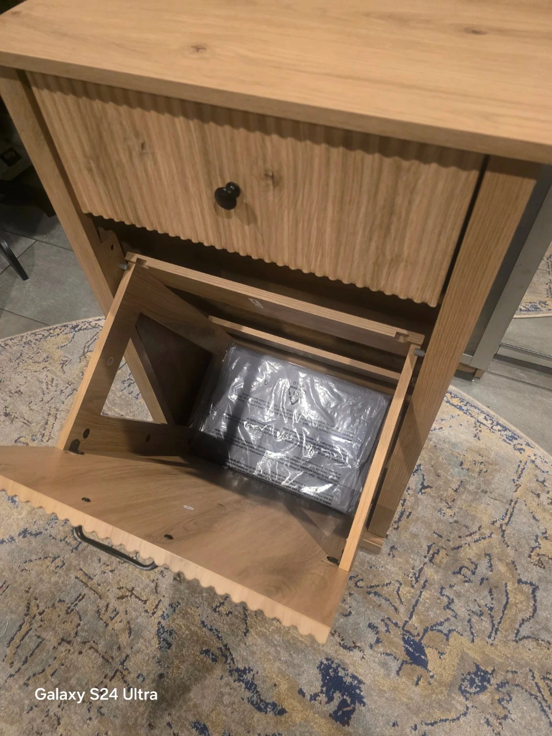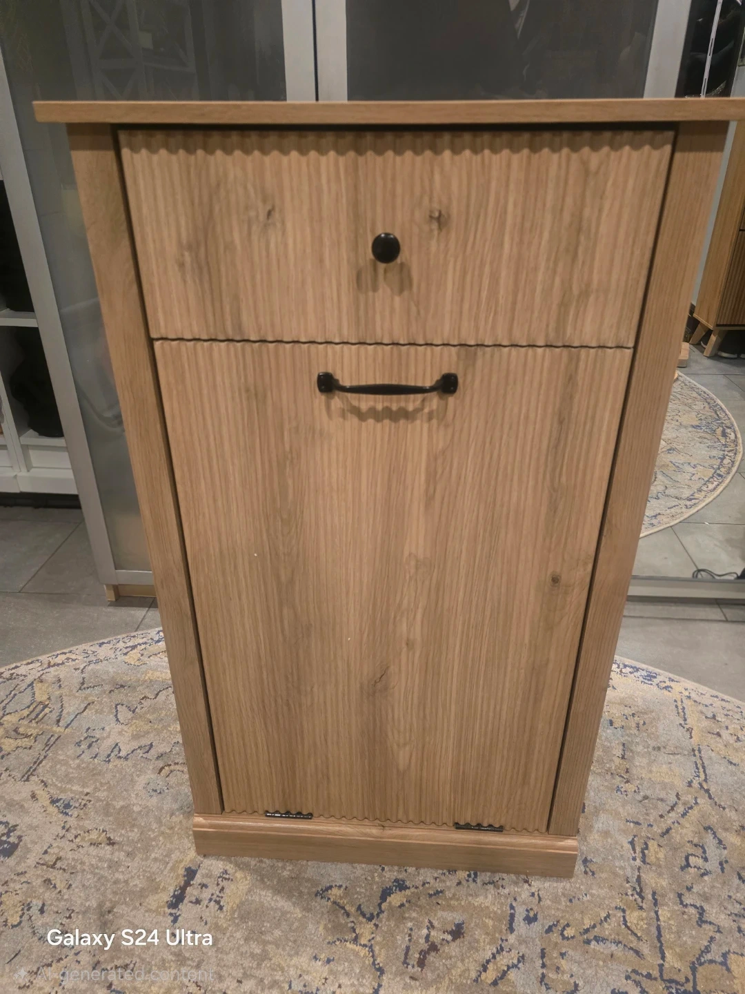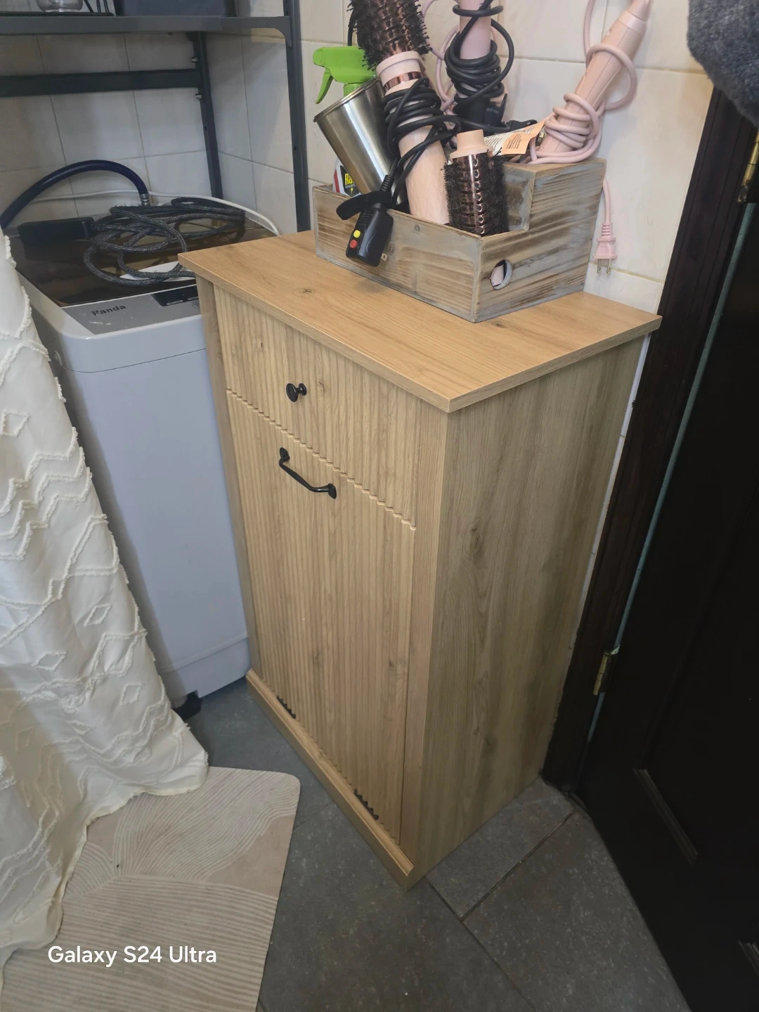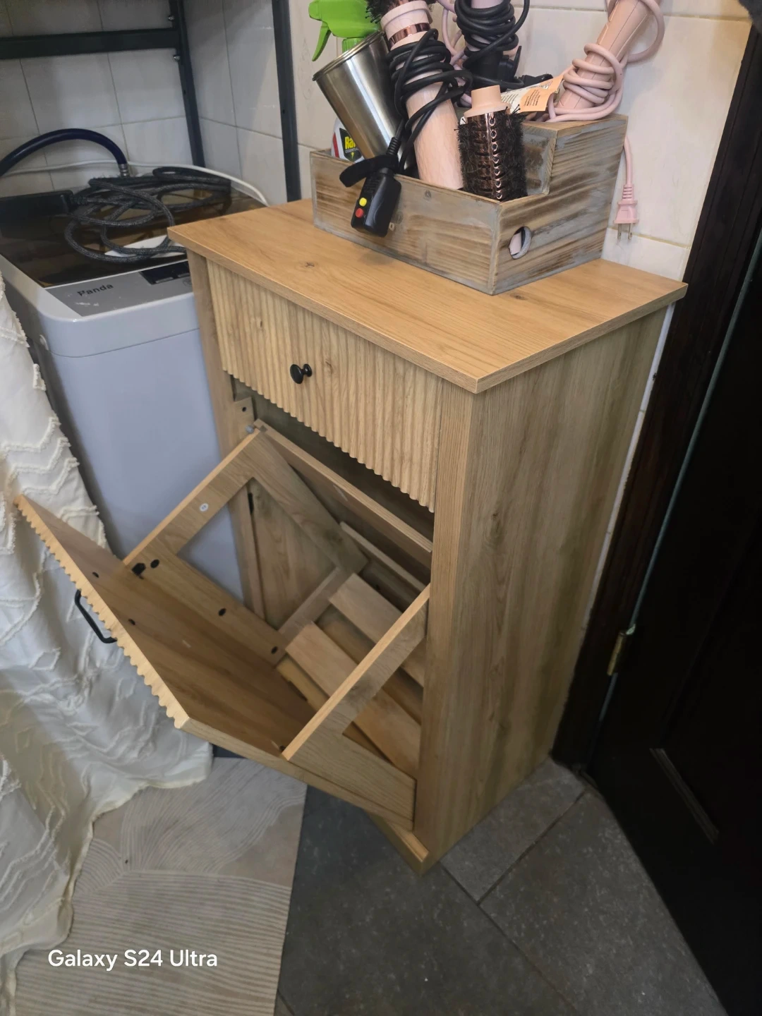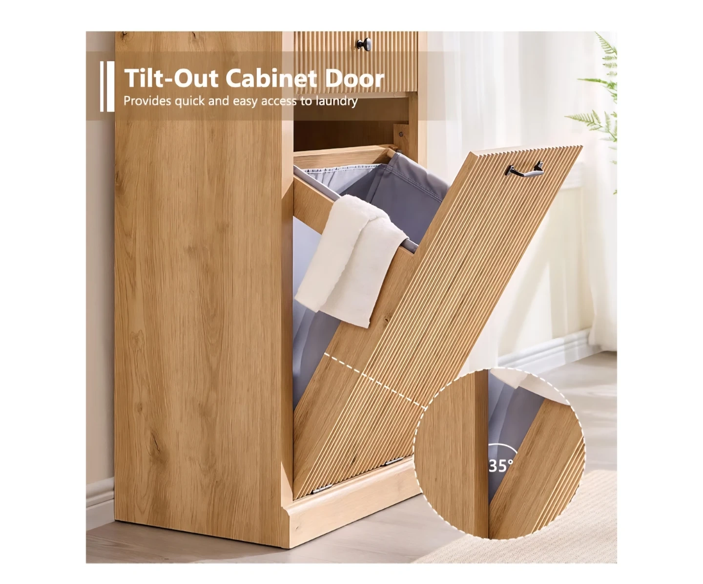 Modern Oak Tilt-Out Laundry Hamper Cabinet with Drawer